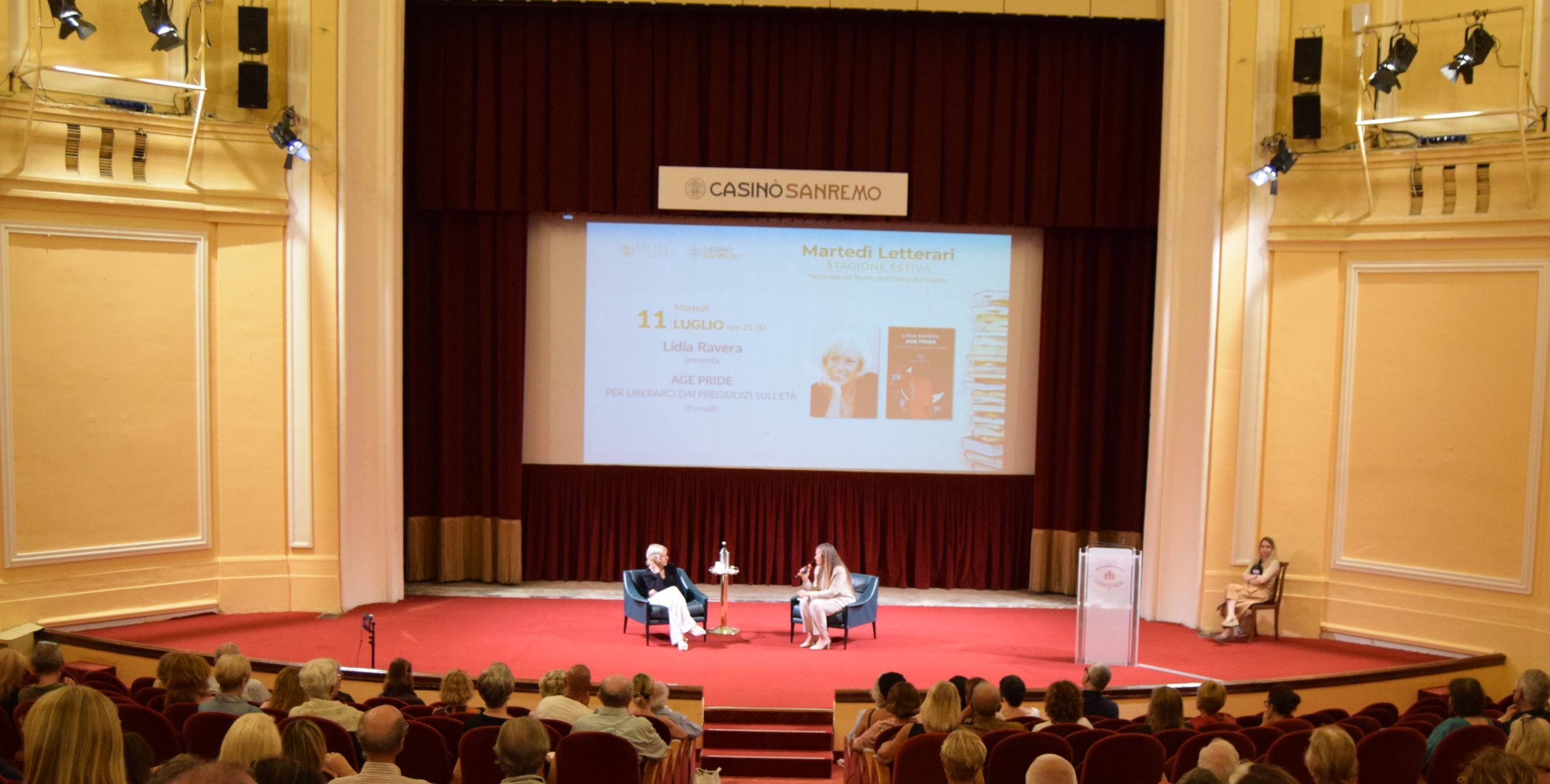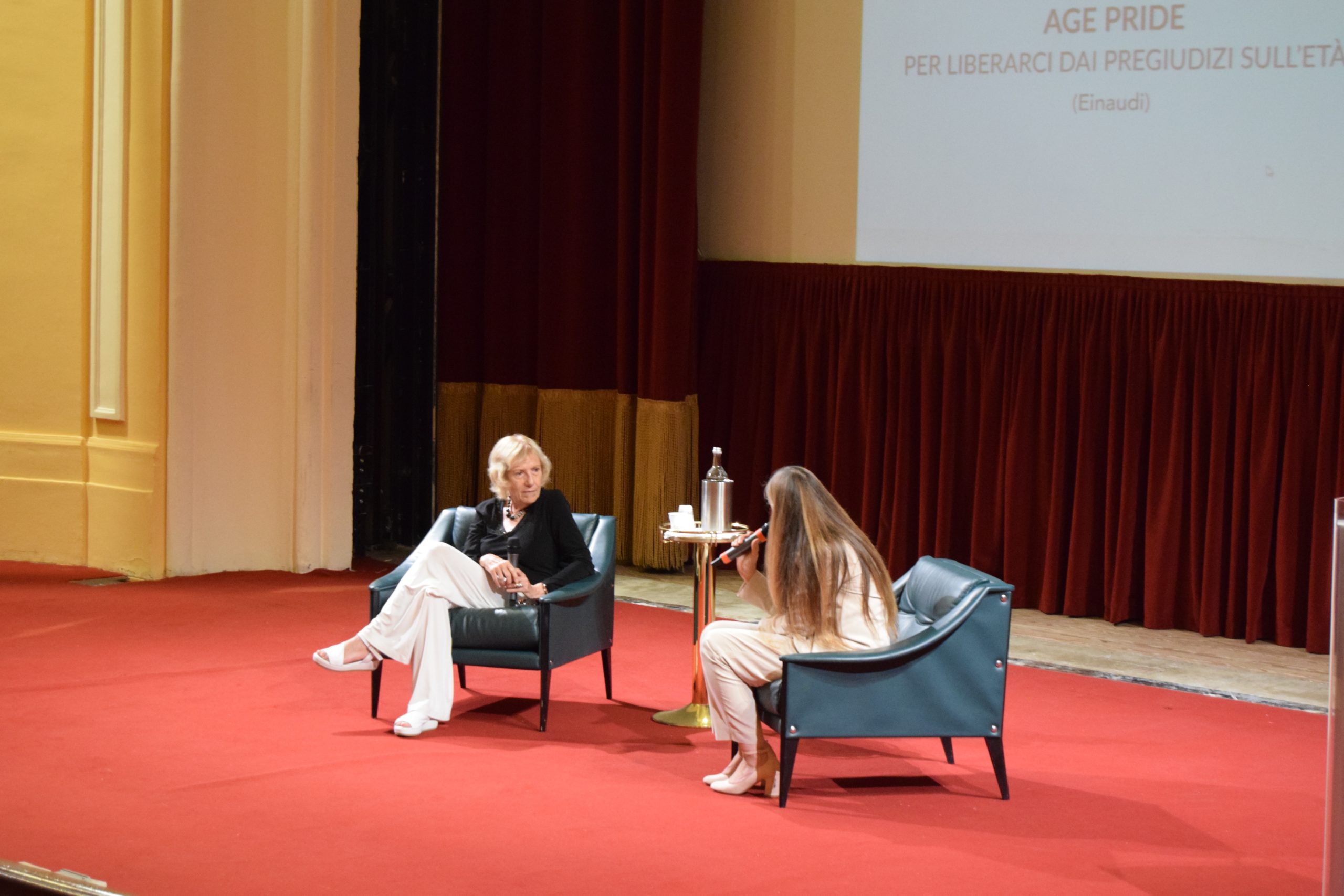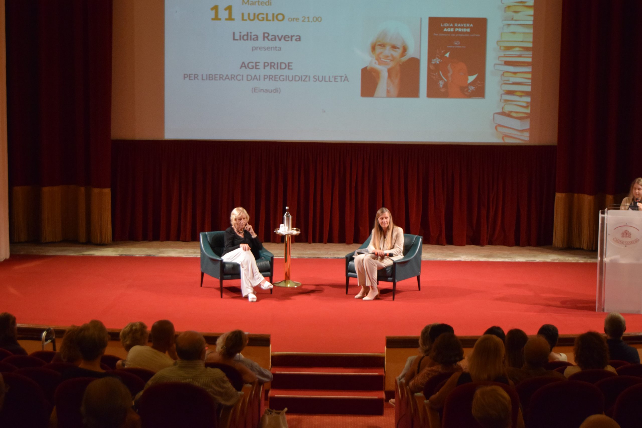 Ha affascinato il numeroso pubblico del Teatro del Casinò martedì 11 luglio 2023, la scrittrice Lidia Ravera parlando del suo “Age Pride. Per liberarci dei pregiudizi sull’età. ( Einaudi) .