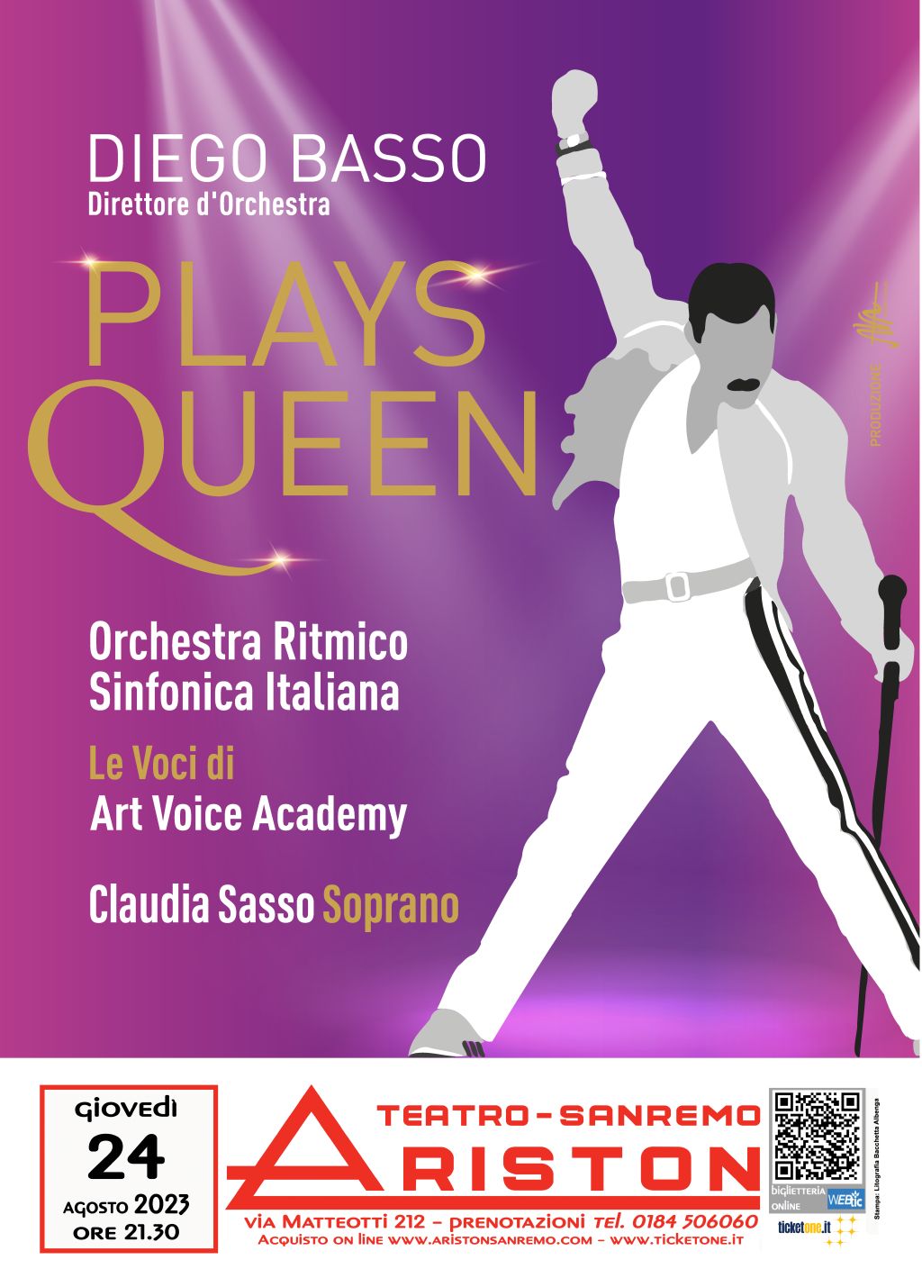 Il 24 agosto 2023, presso il Teatro Ariston di Sanremo (Imperia), si terrà un altro imperdibile appuntamento del “DIEGO BASSO PLAYS QUEEN”, una serata evento in occasione dei sessant’anni in quello che è riconosciuto, grazie al Festival di Sanremo, come il “tempio del pop italiano”. Lo spettacolo avrà inizio alle ore 21.30 e vedrà la partecipazione speciale del soprano Claudia Sasso.