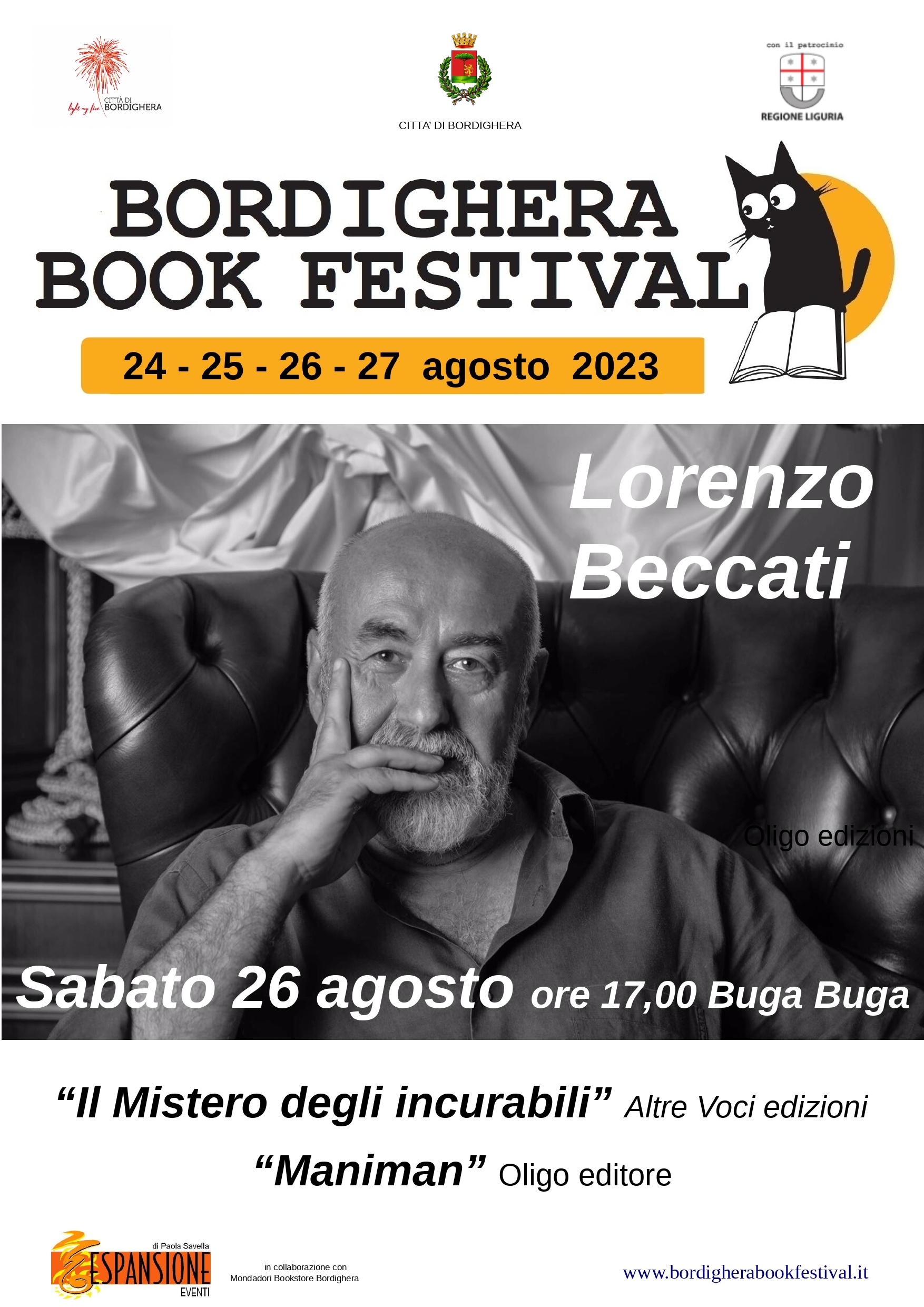 ore 17,00 Buga Buga Lorenzo Beccati “Maniman” Oligo editore e “Il Mistero degli incurabili” Altre Voci edizioni