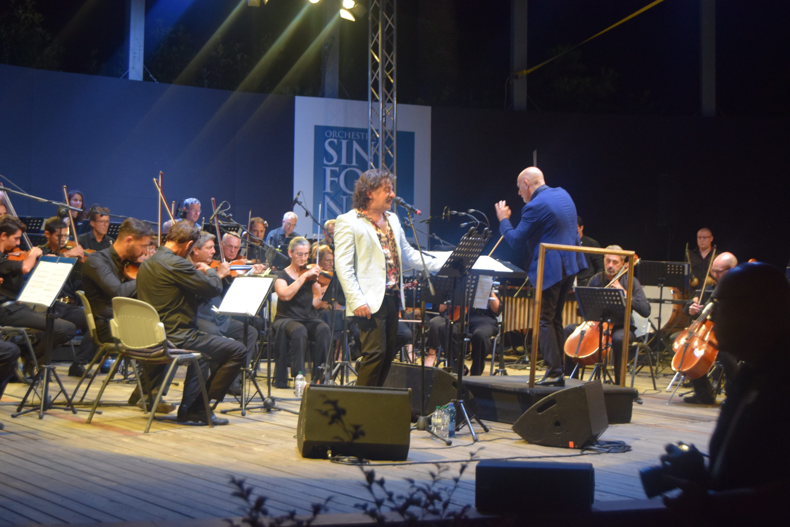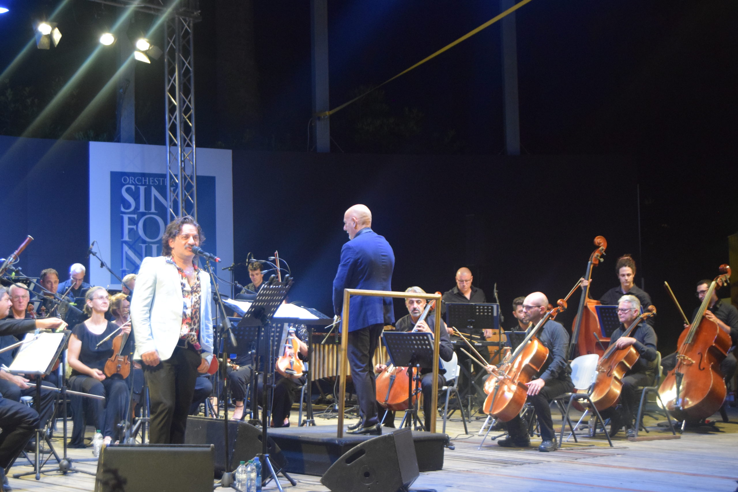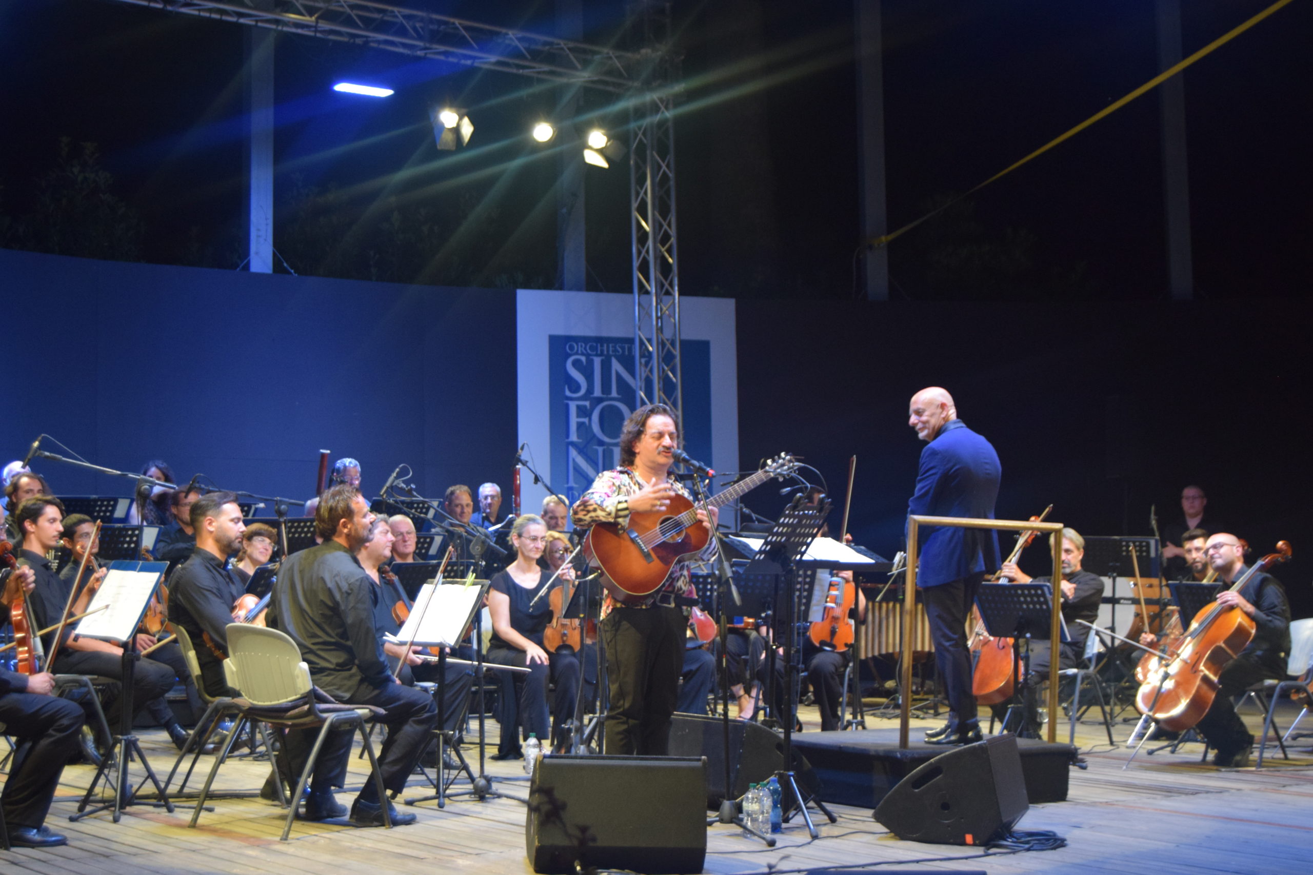 La serata dedicata al grande Domenico Modugno è stata un crescendo di emozioni, Peppe Voltarelli, accompagnato dall’Orchestra Sinfonica di Sanremo diretta dal M° Giancarlo De Lorenzo ha interpretato con passione canzoni popolari in dialetto e poi i grandi successi come ” Nel blu dipinto di blu” , ” L’uomo in frack” , Lazzarella, Musetto, La donna riccia, Lu pisce spada, e altre. Peppe Voltarelli è un personaggio nel panorama musicale italiano, che solitamente canta con la sua chitarra, mentre in questo concerto ha avuto l’opportunità di essere accompagnato dalla splendida Orchestra Sinfonica di Sanremo, ottenendo calorosissimi applausi da parte del pubblico.