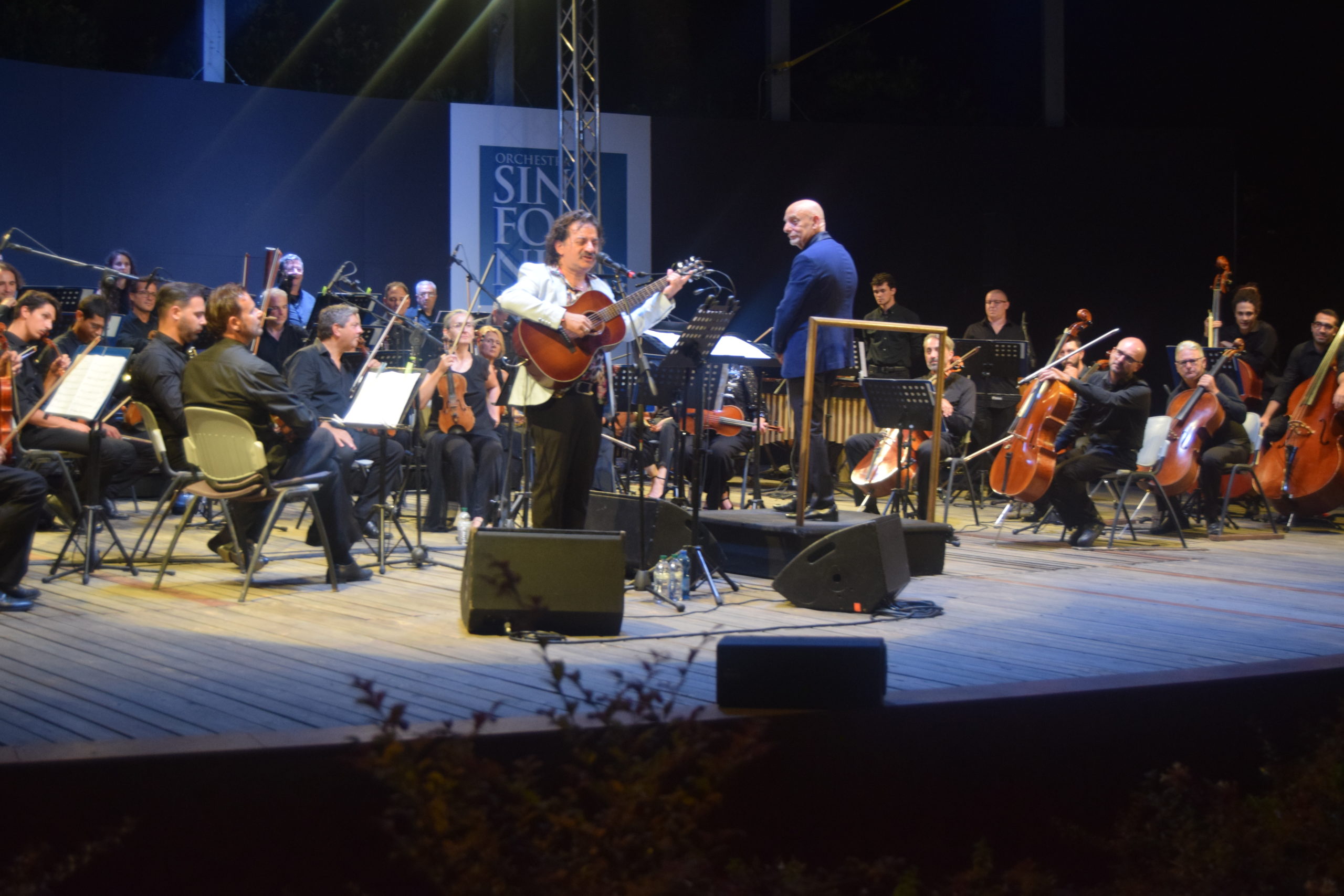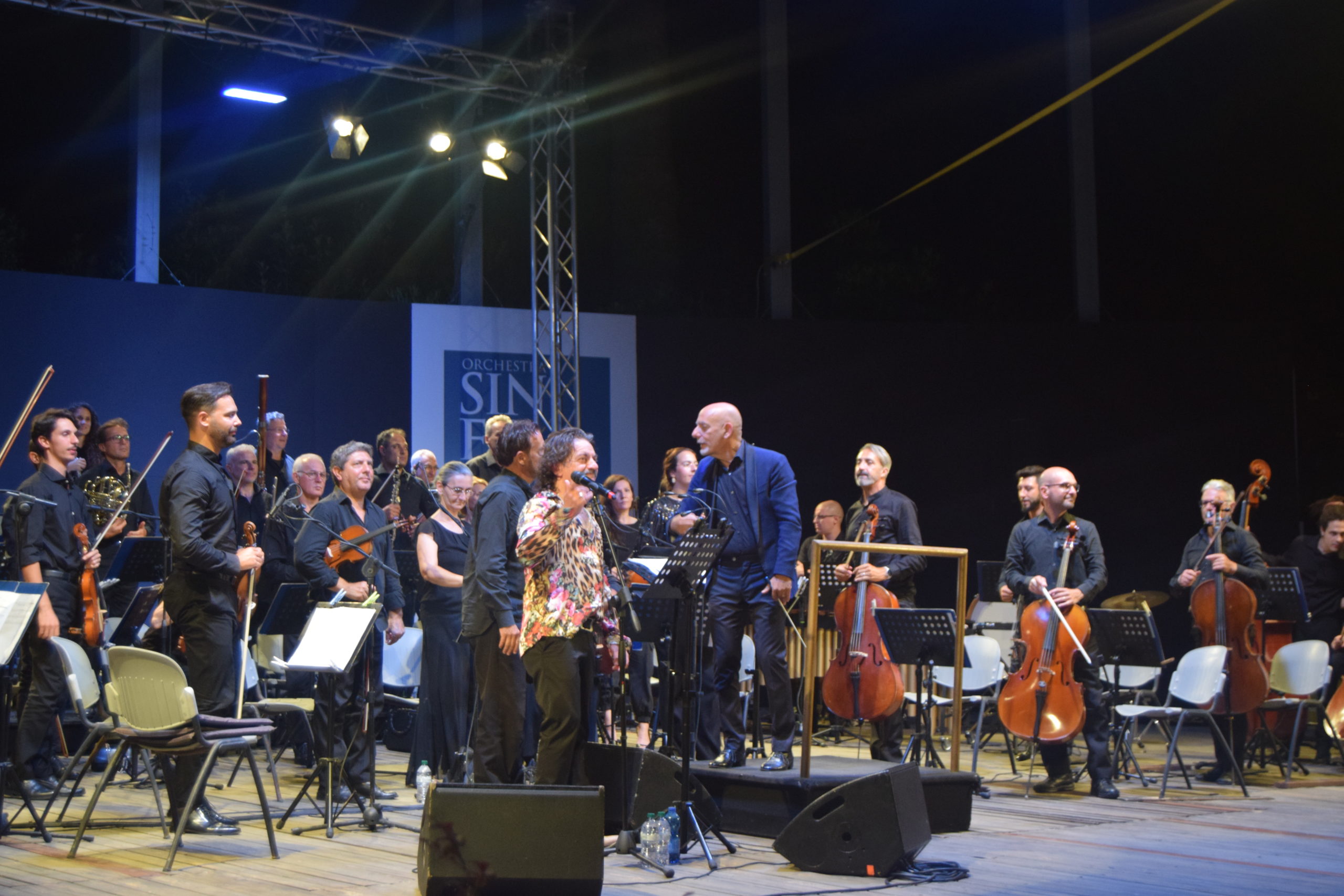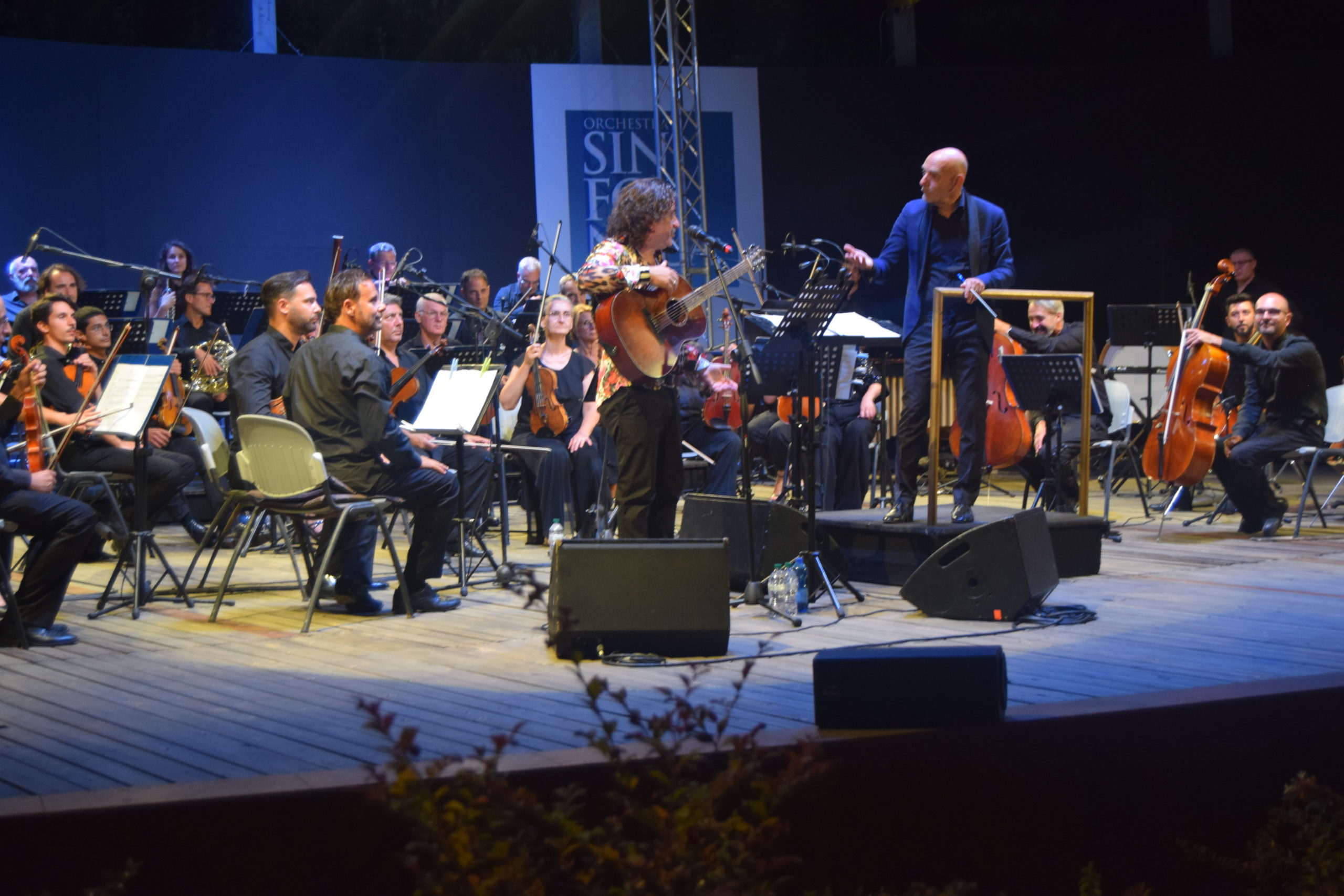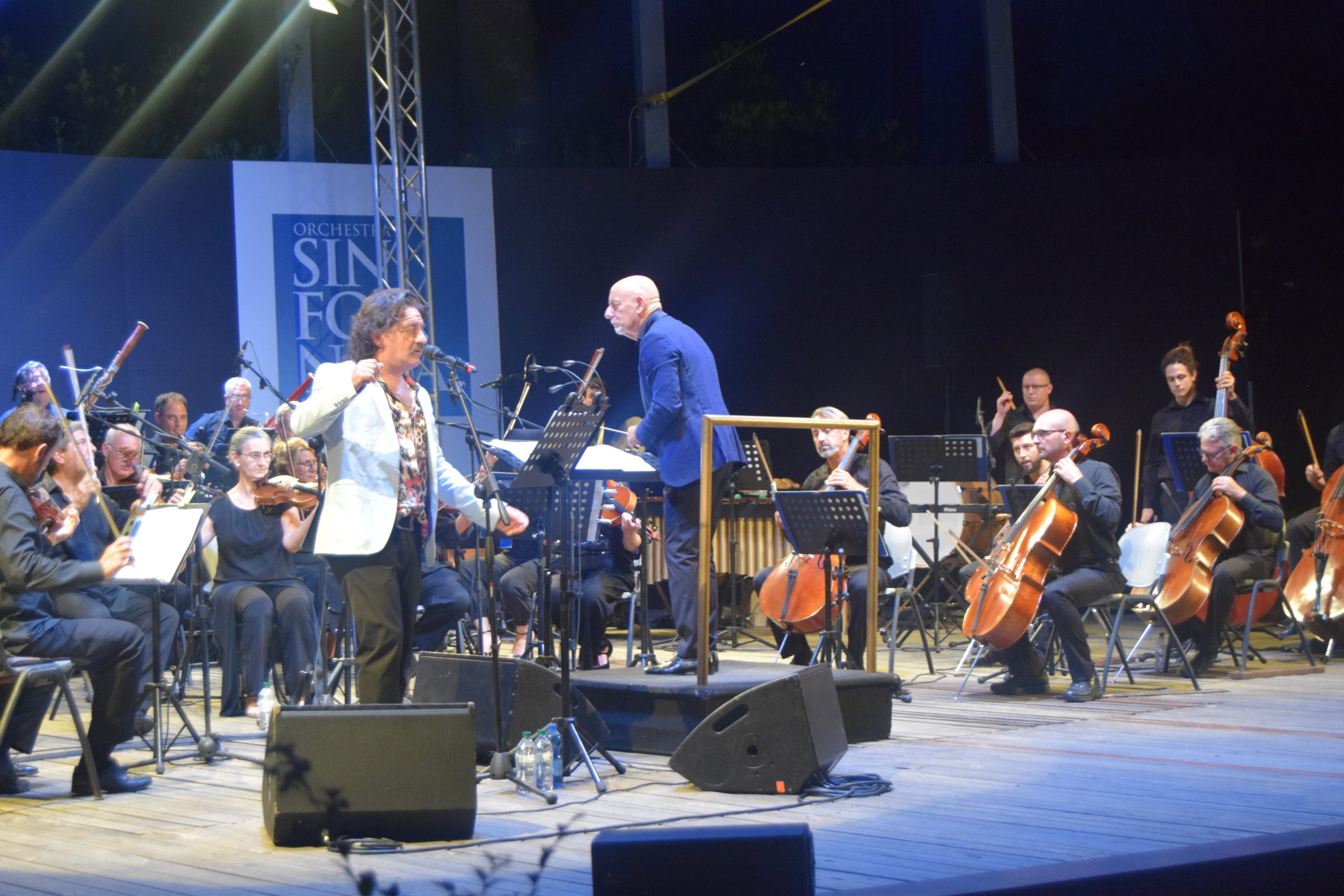 La serata dedicata al grande Domenico Modugno è stata un crescendo di emozioni, Peppe Voltarelli, accompagnato dall’Orchestra Sinfonica di Sanremo diretta dal M° Giancarlo De Lorenzo ha interpretato con passione canzoni popolari in dialetto e poi i grandi successi come ” Nel blu dipinto di blu” , ” L’uomo in frack” , Lazzarella, Musetto, La donna riccia, Lu pisce spada, e altre. Peppe Voltarelli è un personaggio nel panorama musicale italiano, che solitamente canta con la sua chitarra, mentre in questo concerto ha avuto l’opportunità di essere accompagnato dalla splendida Orchestra Sinfonica di Sanremo, ottenendo calorosissimi applausi da parte del pubblico.