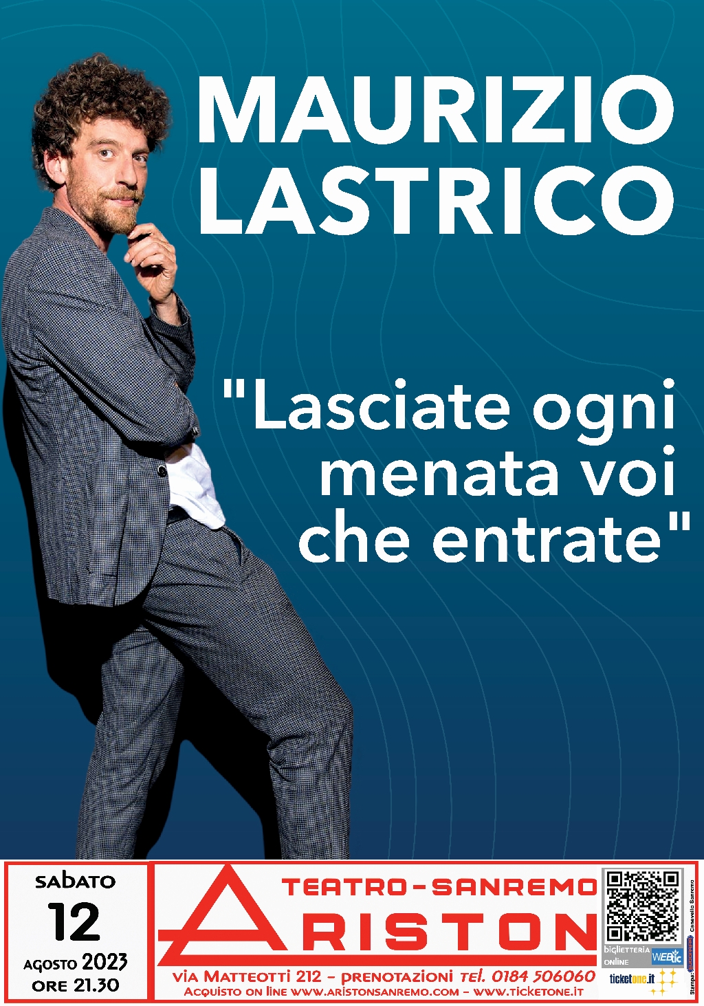 Sabato 12 agosto ore 21.30 torna al teatro Ariston Maurizio Lastrico con lo spettacolo “Lasciate ogni menata voi che entrate”