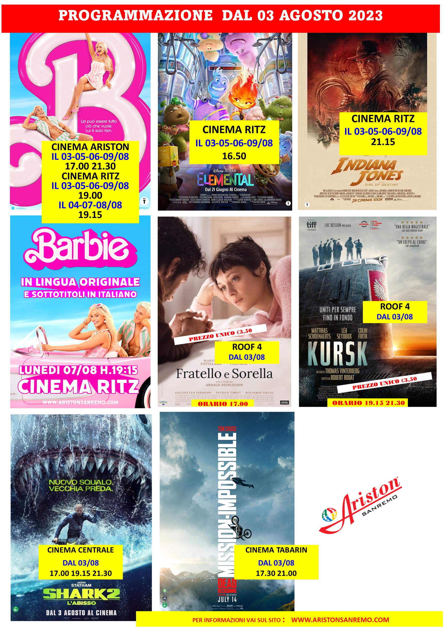 PROGRAMMAZIONE CINEMA SANREMO DAL 3 AGOSTO 2023