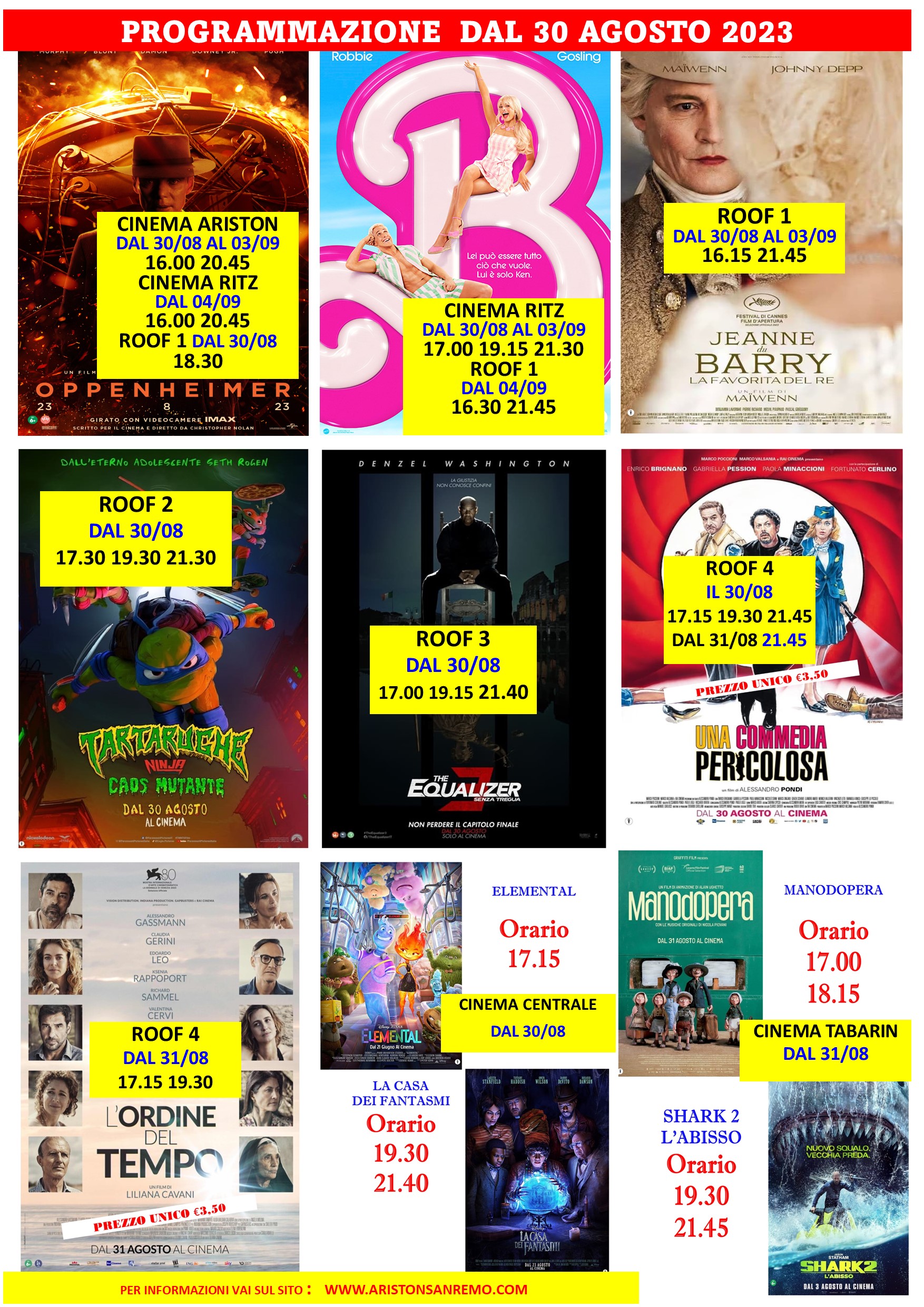 PROGRAMMAZIONE CINEMA SANREMO DAL 30 AGOSTO 2023