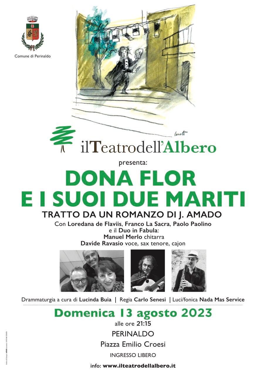 Dopo il felice debutto dello scorso luglio, domenica 13 agosto, alle ore 21,00, torna a Perinaldo la compagnia del Teatro dell’Albero, (con sede a S. Lorenzo al Mare), con il secondo e ultimo appuntamento: lo spettacolo “Doña Flor e i suoi due mariti”, con la musica sudamericana a fare da sfondo nell’ambientazione del centro storico del borgo delle stelle.
