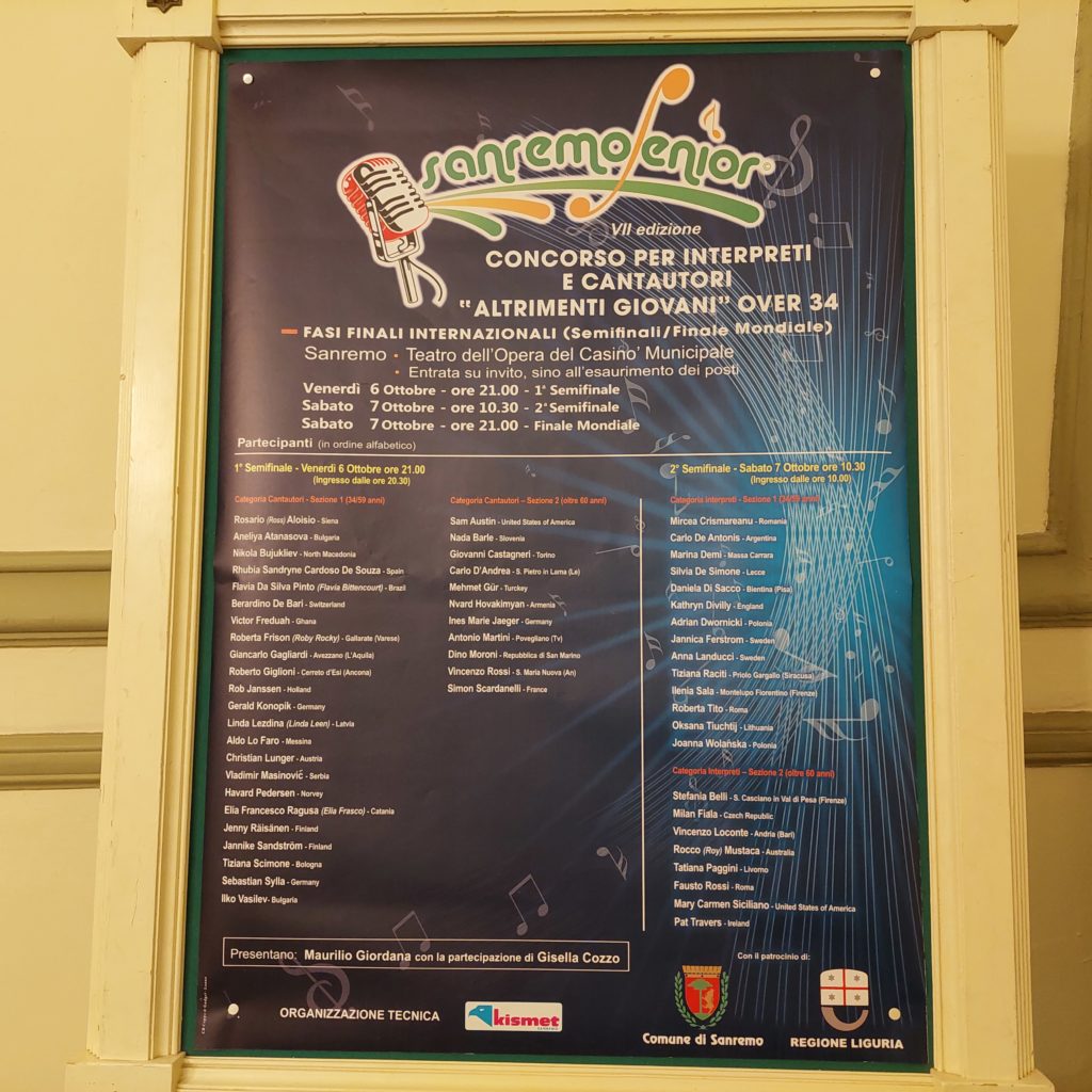 33 concorrenti stranieri provenienti da 29 nazioni e 23 partecipanti italiani arrivati da 13 regioni, alle due Semifinali ed alla Finale Mondiale di “sanremoSenior” 2023, che si sono disputate venerdì e sabato scorsi al Teatro Ariston dell’Opera del Casinò di Sanremo: sono stati questi i fortunati selezionati per le Fasi Finali su 923 iscritti.