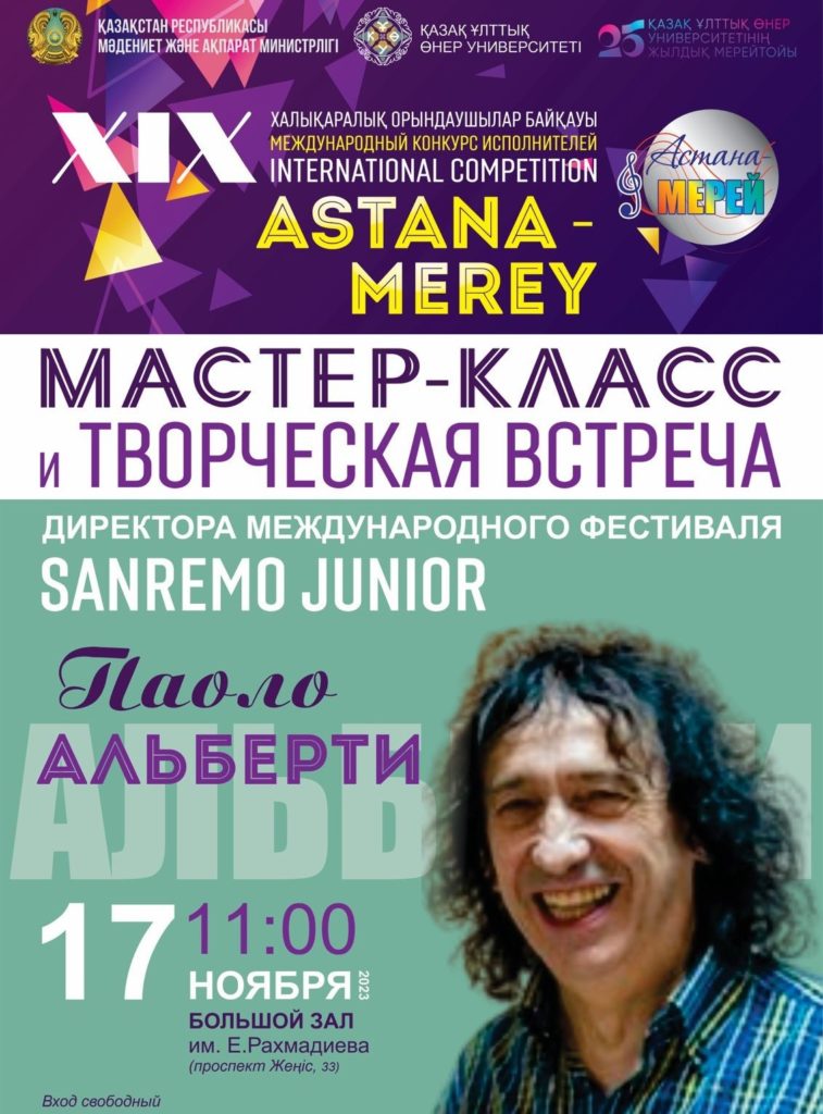 “E’ con sincera soddisfazione che annuncio questo accordo stipulato con l’Accademia delle Arti di Astana, che ringrazio per la fiducia. Accordo che porterà il nome di Sanremo attraverso sanremoJunior in ogni parte del Kazakhstan, come ha già avviene in altre nazioni”. – Ha dichiarato il Cav. Uff. Paolo Alberti, fondatore e Presidente di sanremoJunior – “La settimana d’incontri ad Astana mi ha permesso, tra l’altro, di avere un meeting con alcune centinaia di bambini e studenti di musica di tutto il paese ed i loro insegnanti, durante una manifestazione pianificata appositamente nell’ambito di un concorso nazionale organizzato dalla “Kazakh National University of Arts”, al quale hanno aderito oltre 700 partecipanti. Ho avuto anche il piacere di essere invitato dai genitori di un noto cantante kazako – Dimash – nel suo ristorante “Daididau” (che è anche il titolo di una sua famosa canzone): sicuramente uno del migliori del Paese. L’incontro con l’Ambasciatore d’Italia in Kazakhstan – il Dottor Marco Alberti – che ringrazio per l’interessante meeting concesso, ha sancito una settimana estremamente positiva sotto tutti i punti di vista”.