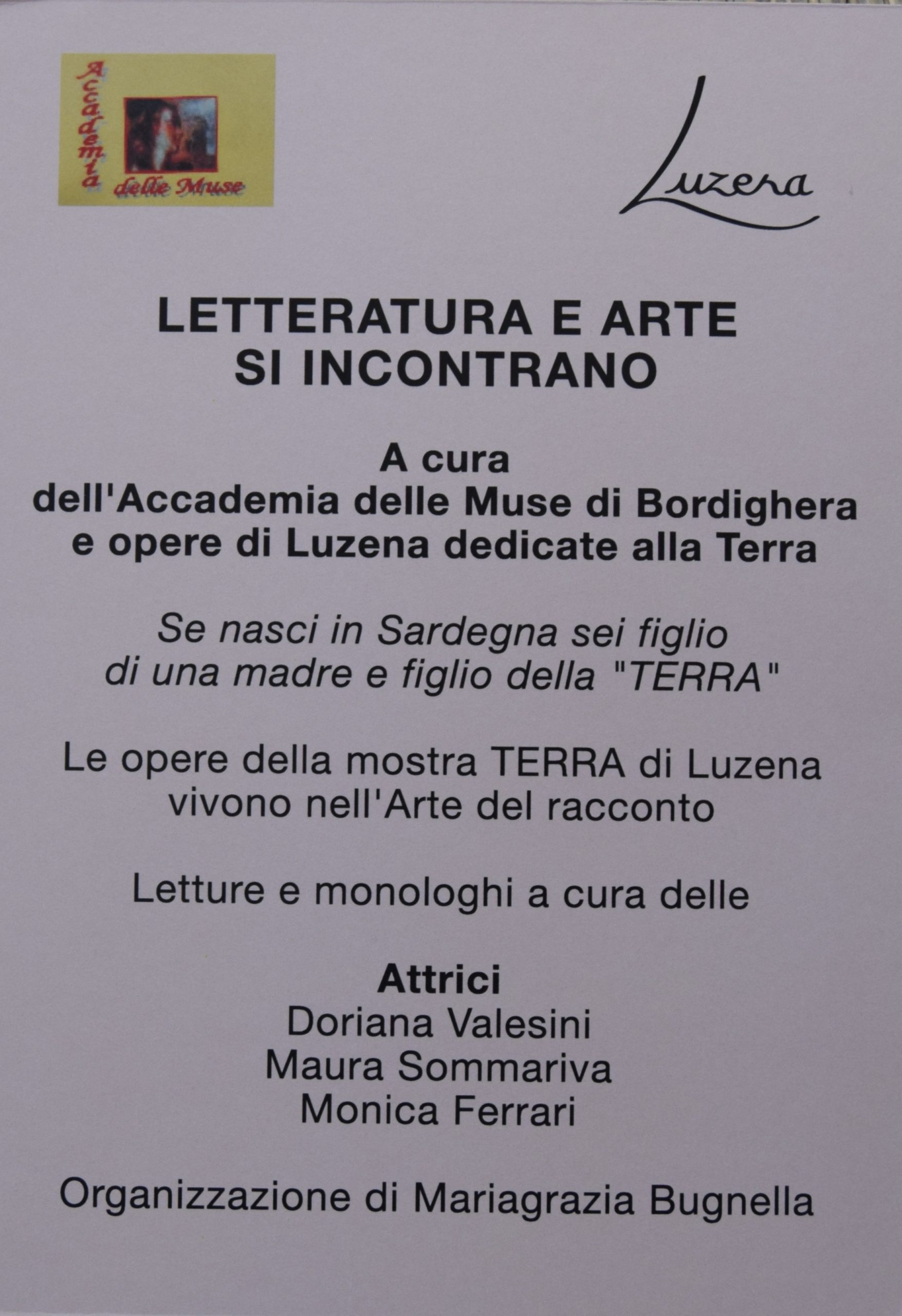 Il finissage della mostra TERRA sarà arricchito dalle letture e monologhi dell’Accademia Delle Muse Bordighera..