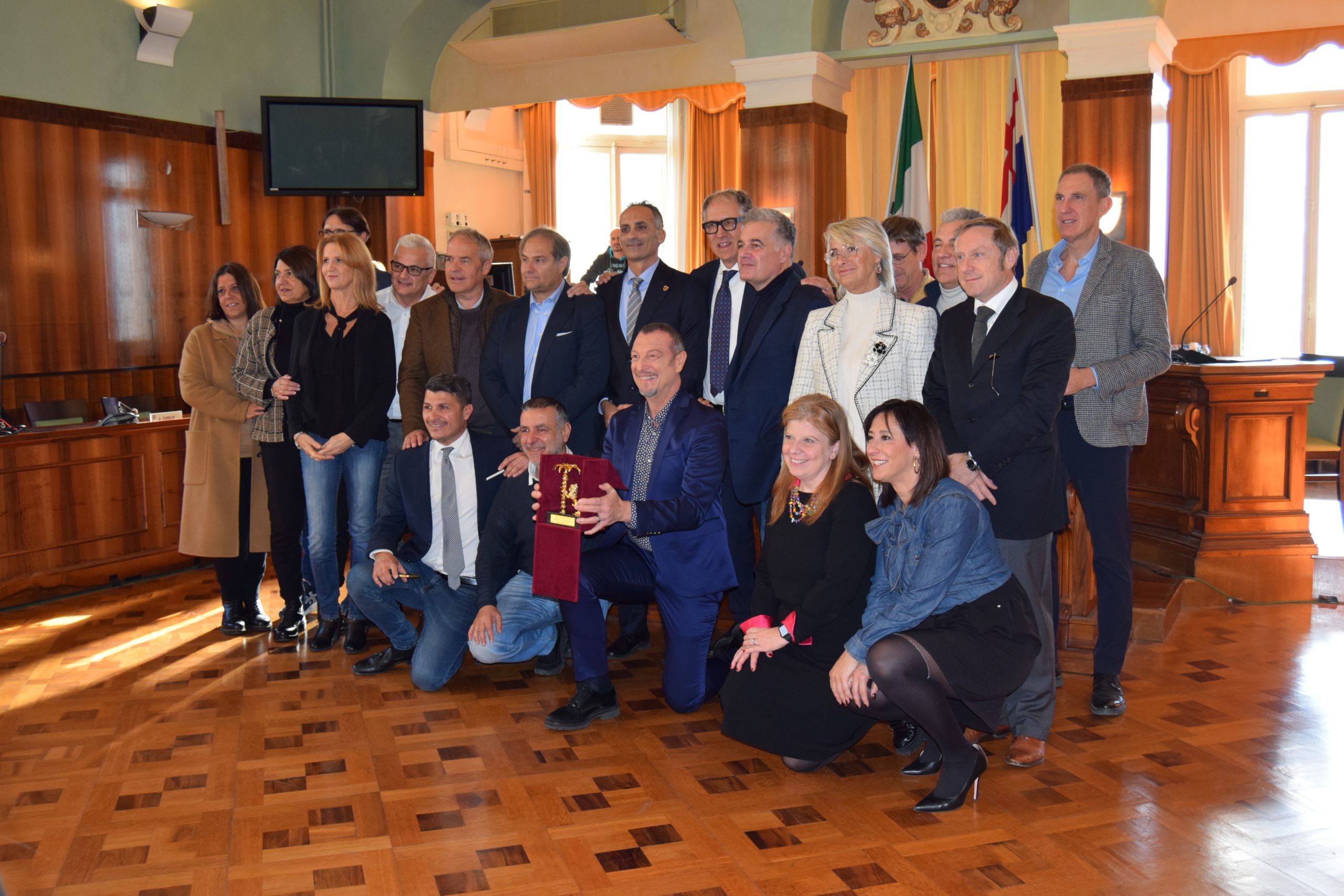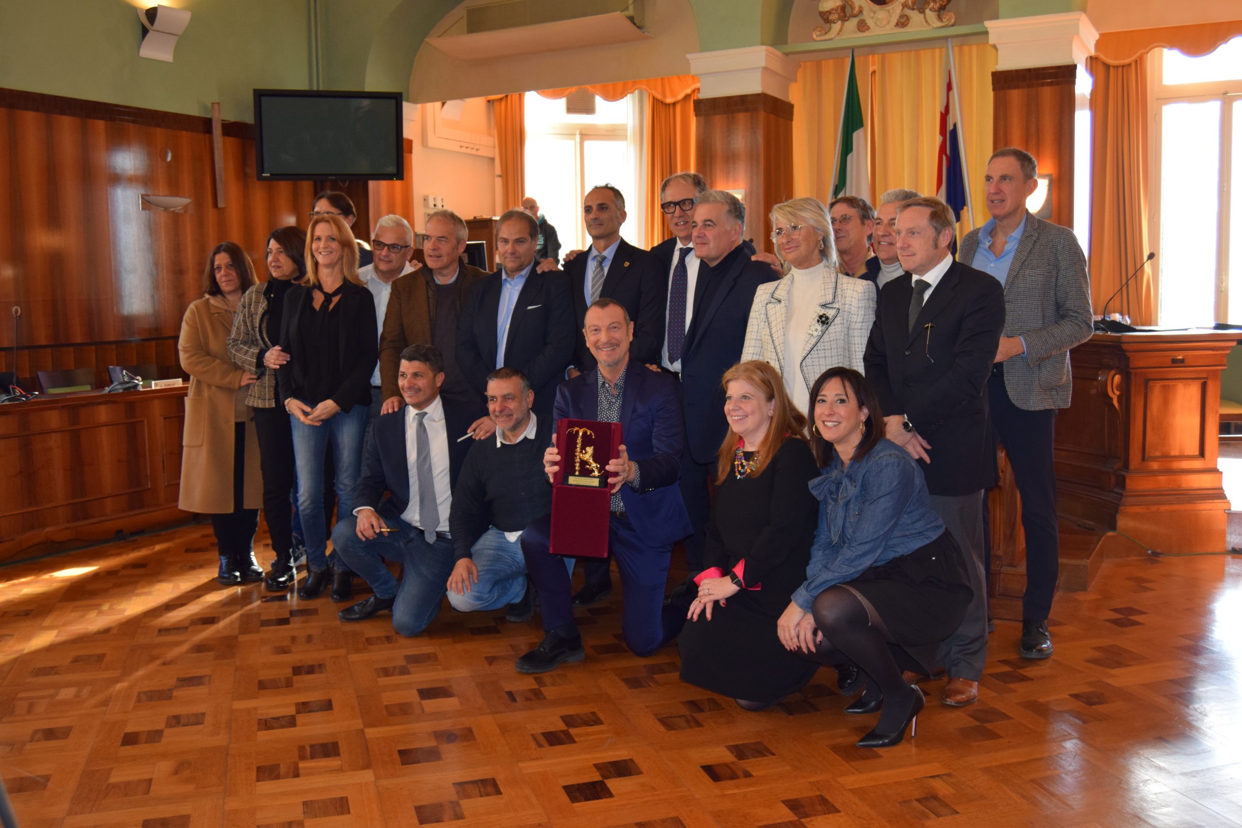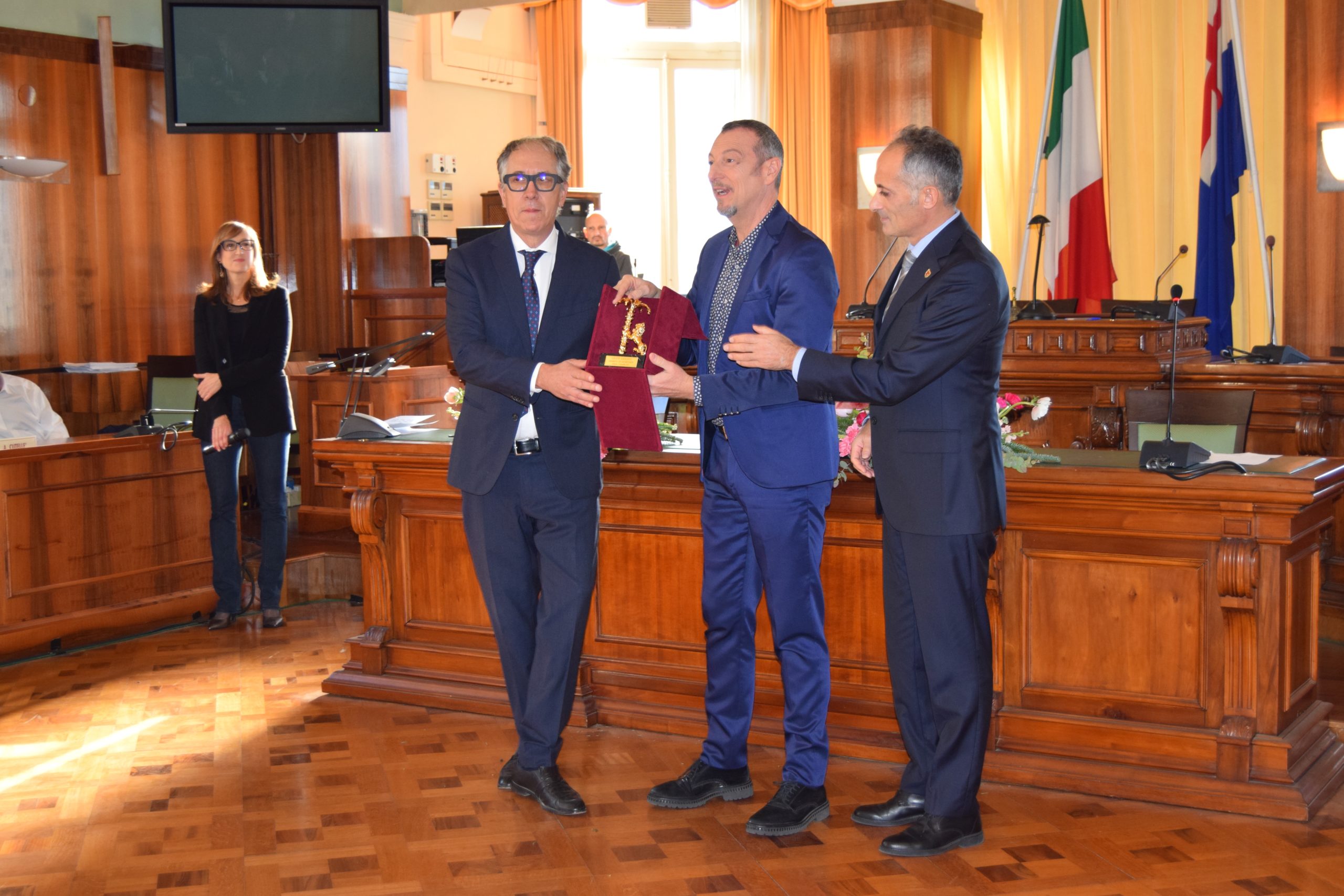 Martedì 19 dicembre 2023 nella Sala del Consiglio Comunale di Sanremo, alle ore 10:30 il Sindaco Alberto Biancheri ha consegnato ad Amadeus un importante premio “AMICO DI SANREMO” 2023, presenti alla cerimonia tutti i componenti dell’Amministrazione della Città .