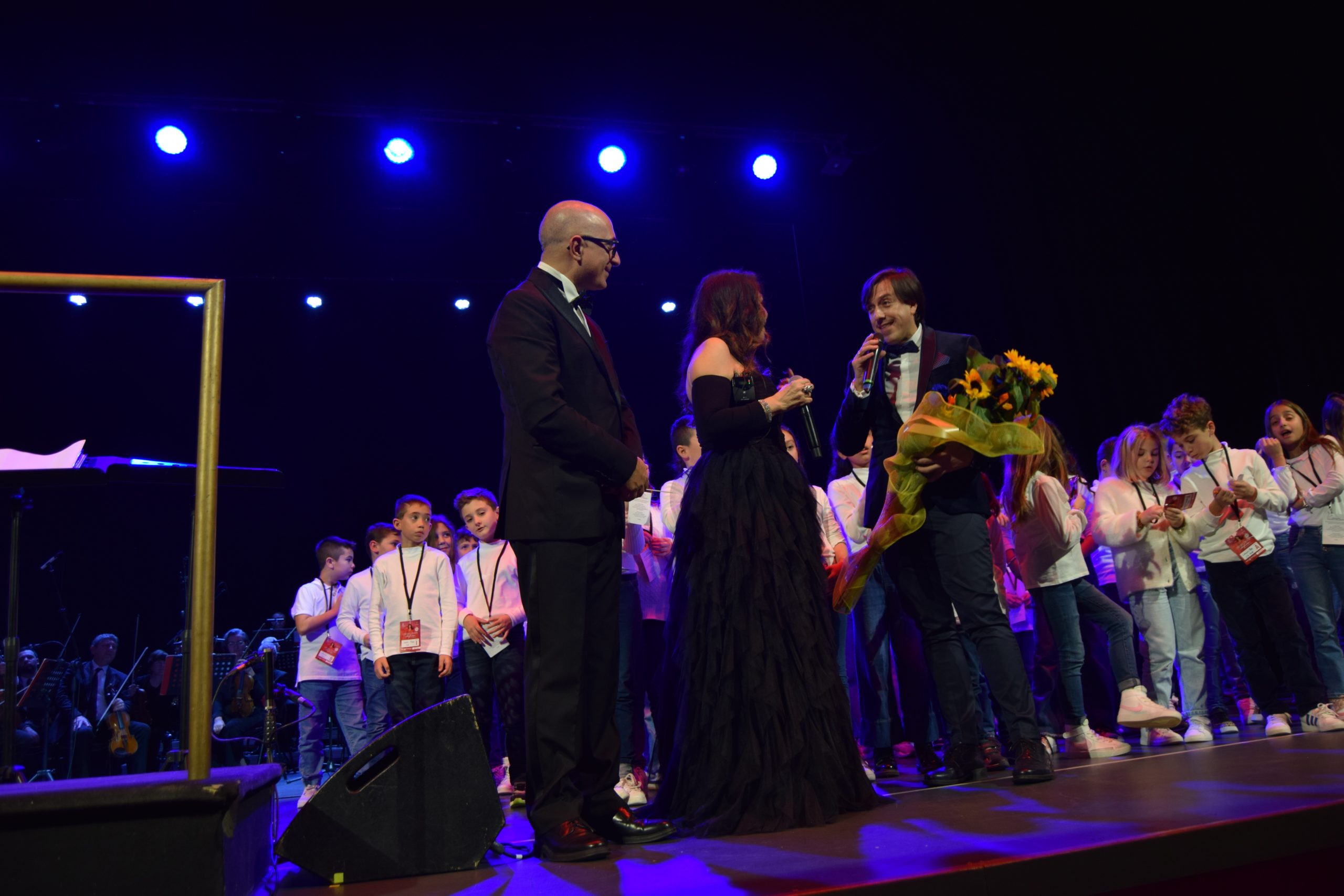 In apertura della serata Walter Vacchino patron del Teatro Ariston ha portato i saluti agli ospiti quali il Dott. Filippo Biolé Presidente della Fondazione Orchestra Sinfonica di Sanremo e Giuseppe Faraldi Assessore del Comune di Sanremo.