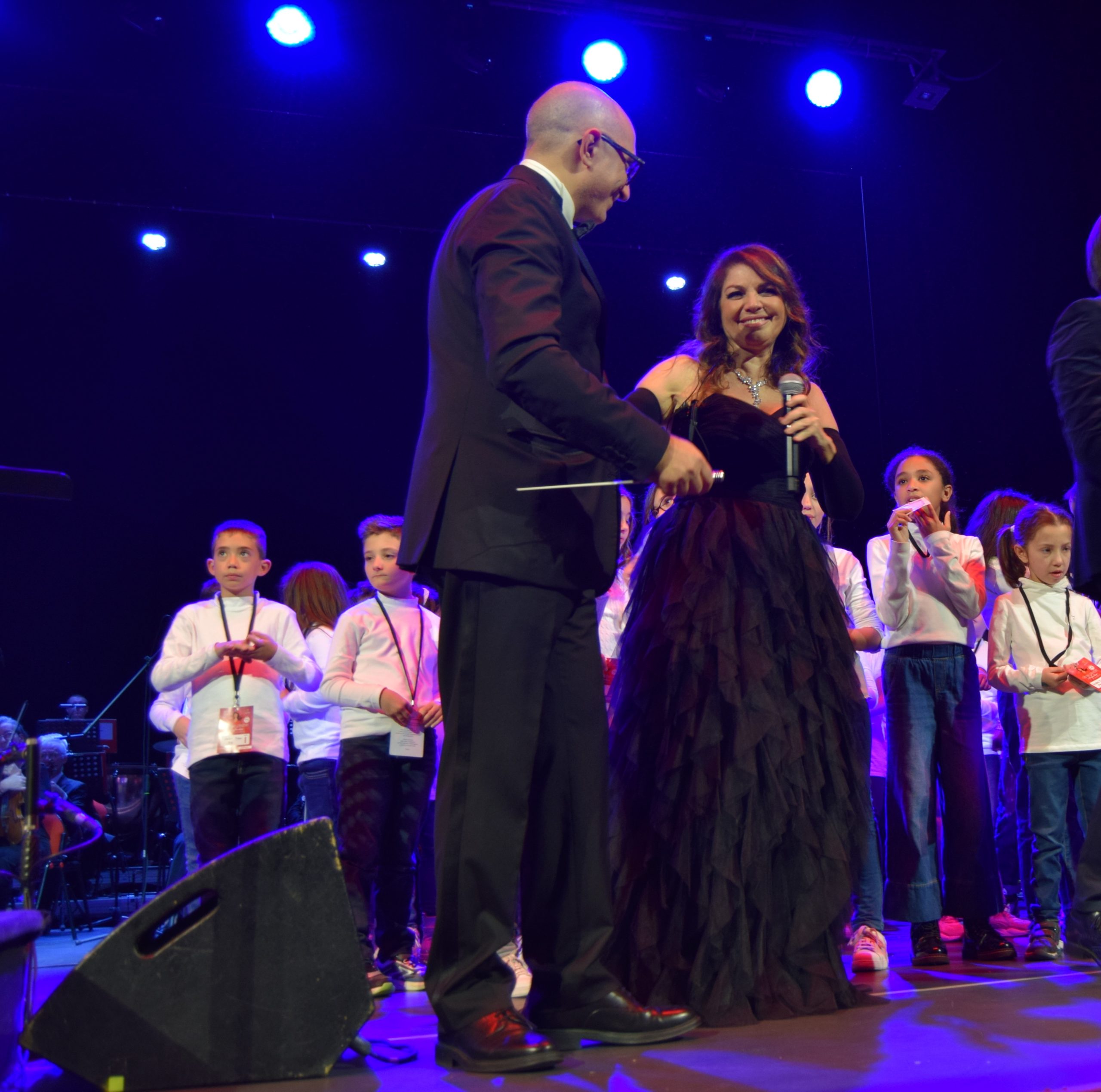 Il concerto di Cristina D’Avena, accompagnata dall’Orchestra Sinfonica di Sanremo, diretta dal Maestro Valeriano Chiaravalle è stato un evento davvero fantastico, impreziosito dalla presenza sul palco dei cori delle scuole primarie della provincia di Imperia. Le sigle dei cartoni animati interpretate da Cristina D’Avena sono state suonate dai Professori della Sinfonica , le melodie hanno catturato il pubblico in sala gremita da genitori, nonni e bimbi , che hanno cantato ed applaudito dopo ogni esibizione. Serenità e amore trasmessi dalla storica voce di Cristina d’Avena, grandi emozioni per tutti i suoi fans, poi un omaggio al grande Lucio Dalla e sul finale il brano natalizio cantato con i cori ha riscaldato i cuori della platea in una magica atmosfera natalizia.