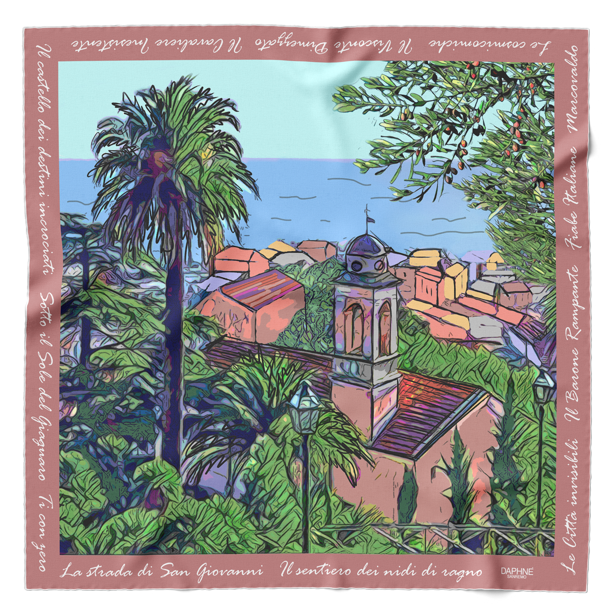 Durante l’incontro verrà presentato dalla Direttrice Barbara Borsotto il foulard creato dalla casa di Moda Daphnè dedicato a Italo Calvino e alla via di San Giovanni, un gioiello che va a completare la collezione di opere in seta che la Maison ha dedicato ai grandi personaggi ed eventi che caratterizzano la Riviera di Ponente e la Costa Azzurra a livello internazionale.
