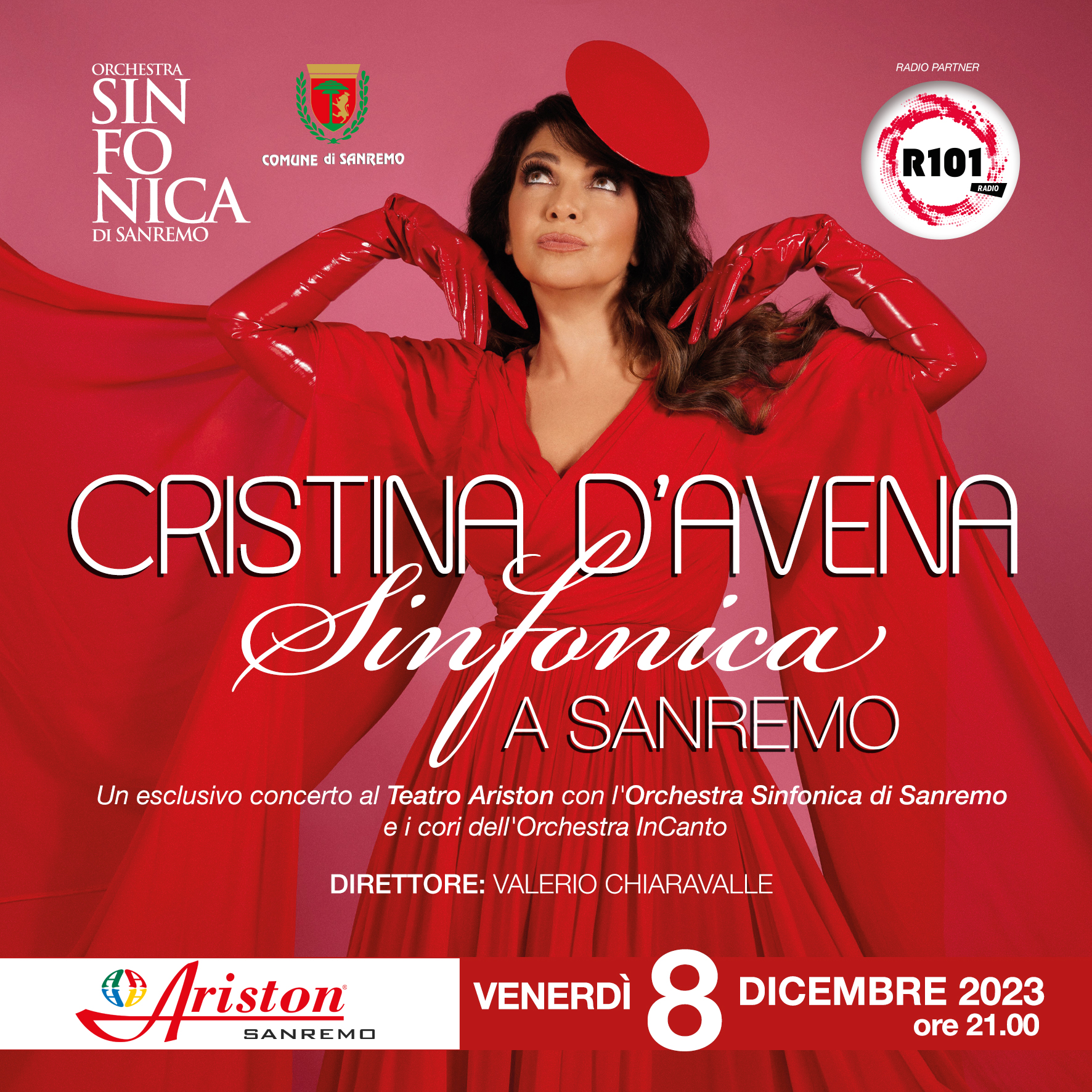 - Concerto di Cristina D’Avena con l’Orchestra Sinfonica di Sanremo venerdì 8 dicembre h. 21.00 al Teatro Ariston di Sanremo: