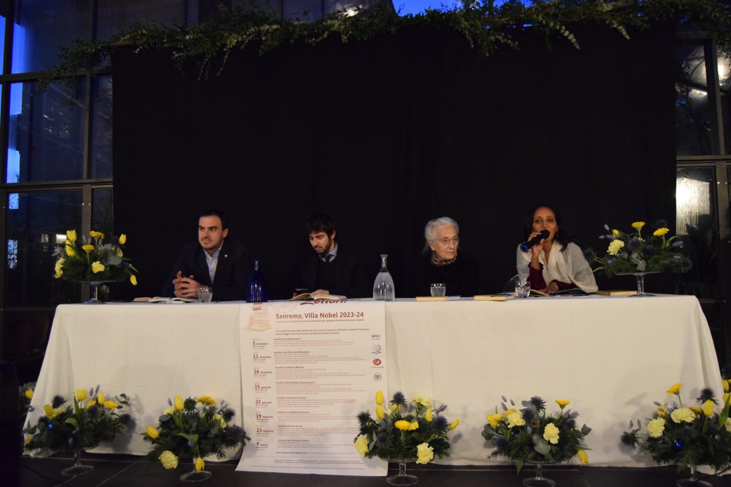 Per tutti i presenti l’incontro è stato fantastico , Piera Levi-Montalcini ingegnere si è rivelata una donna molto “saggia” e degna di grande stima. Ringraziamo la Prof. Francesca Rotta Gentile che ha ideato e curato gli eventi di “Sa(n)remo Lettori” nella cornice della serra di Villa Nobel.