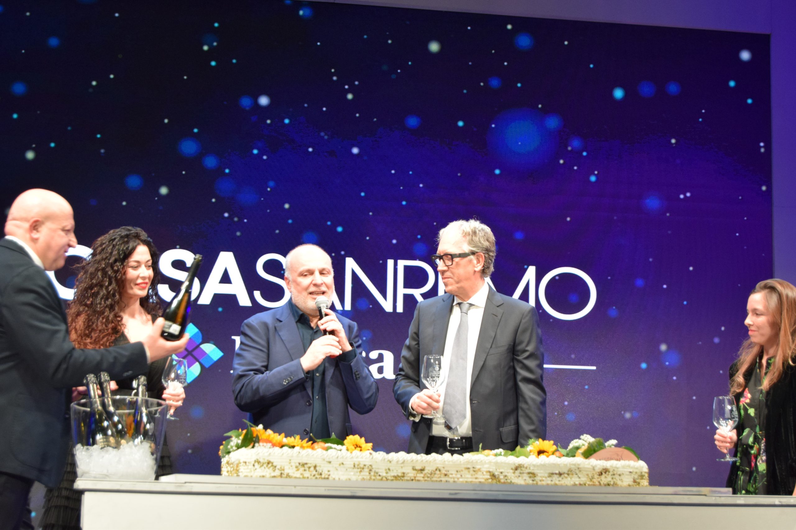 Presenti al taglio del nastro: Vincenzo Russolillo, il conduttore e direttore artistico del Festival Amadeus, il Sindaco di Sanremo Alberto Biancheri e le Autorità .