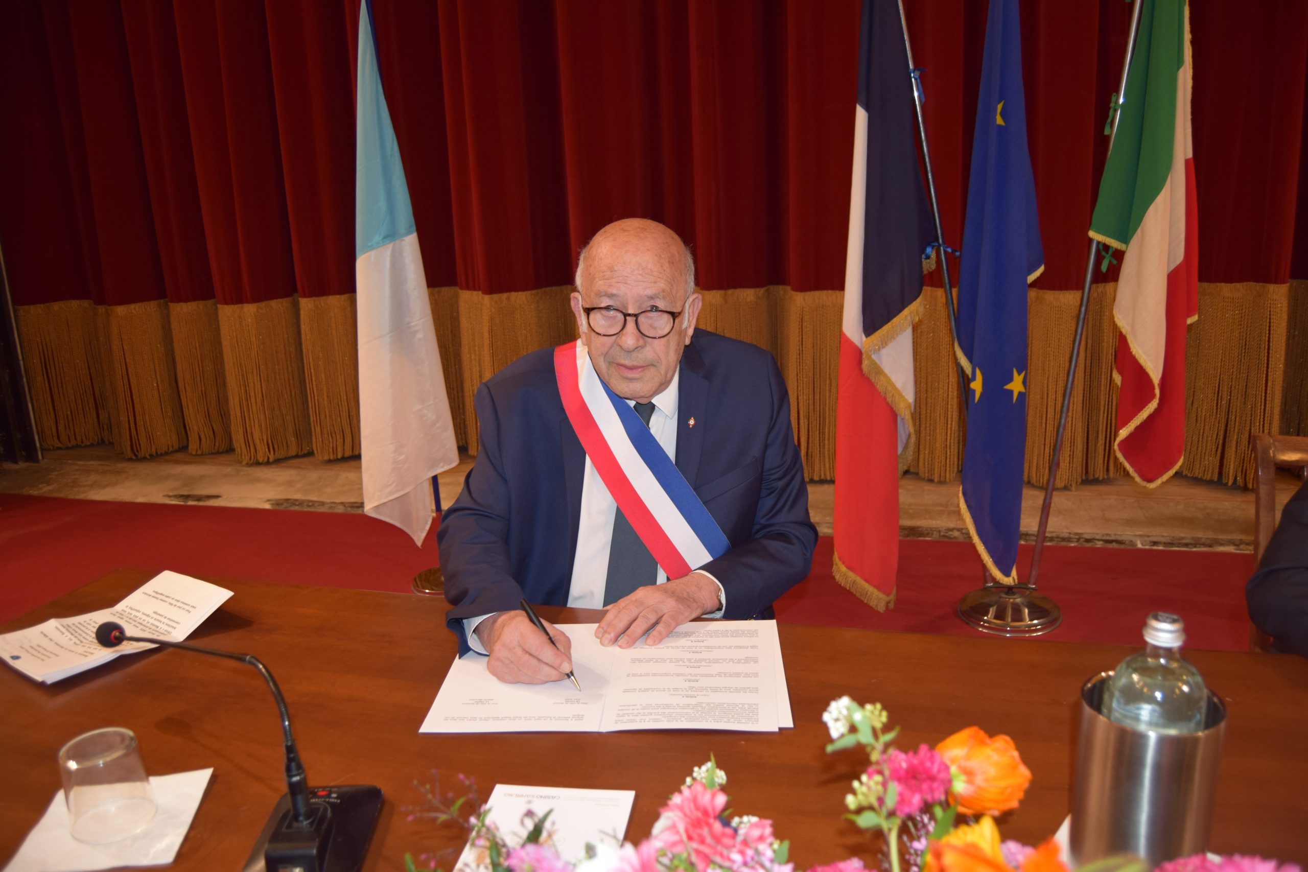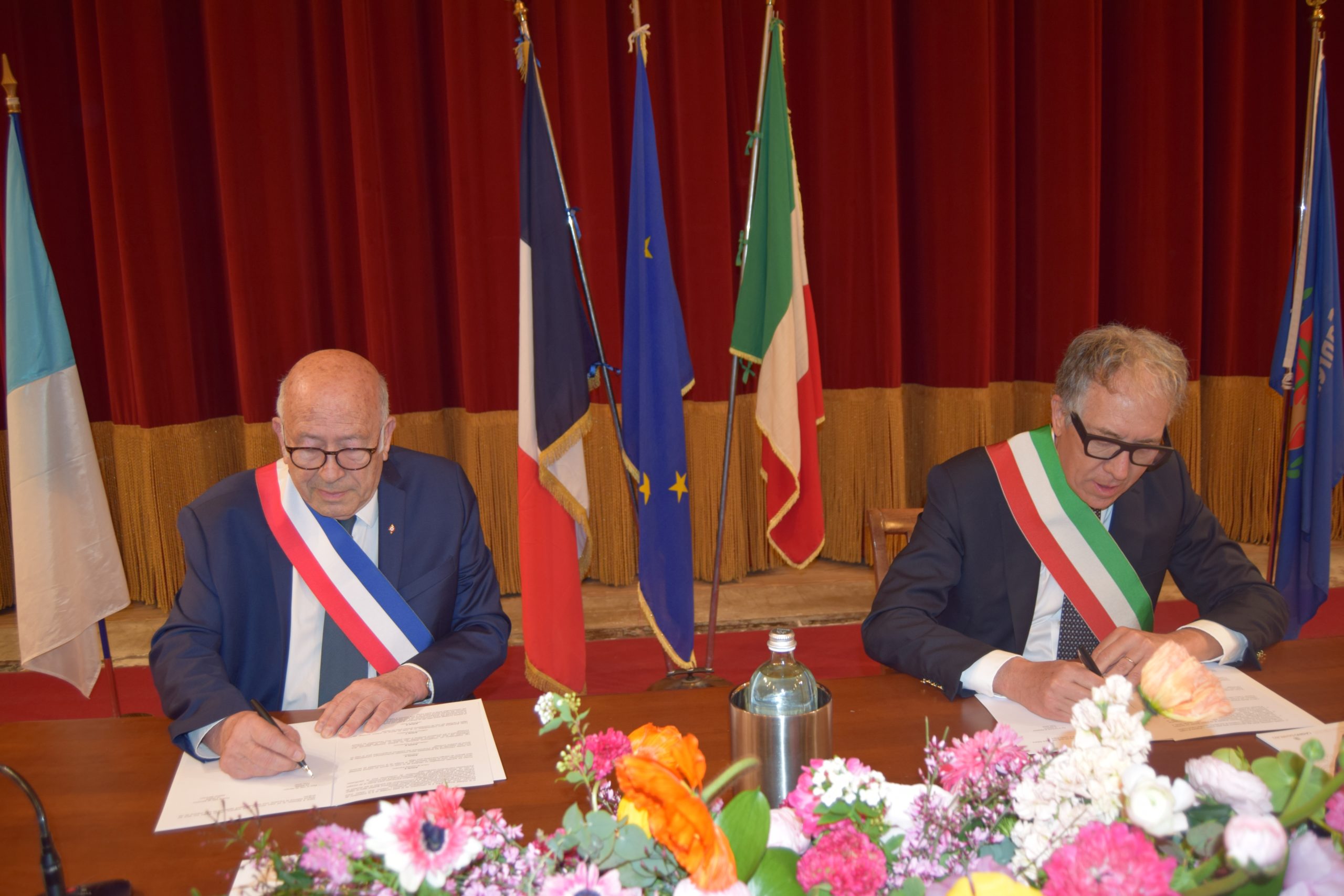 E’ stato firmato domenica 24 marzo, alle 9.15, nel Teatro dell’Opera del Casinò, il gemellaggio tra le città di Sanremo e Mentone da parte dei sindaci Alberto Biancheri (Sanremo) e Yves Juhel (Mentone).