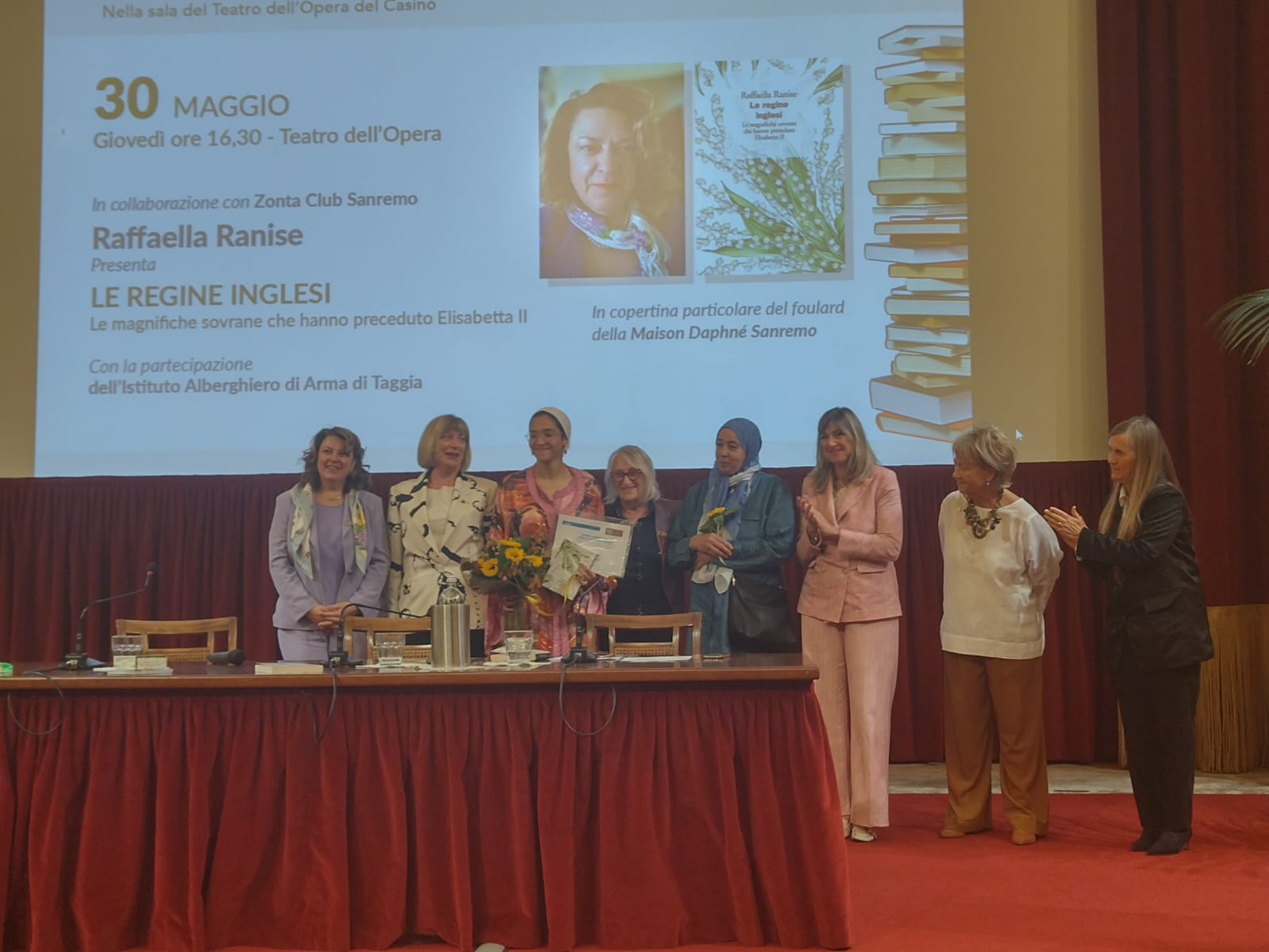 La presidente dello Zonta Club Sanremo Fernanda Littardi ha portato il saluto quindi ha premiato con il Direttivo consegnando la Borsa di studio dell’associazione la studentessa del Liceo Cassini di Sanremo Hasnae Rhamnia, giovane diciassettenne impegnata nel volontariato con l’associazione Libera, amante della letteratura, che ha ritirato il riconoscimento ringraziando la mamma per il suo sostegno. Ha partecipato alla premiazione Renata Vallo l’Area Director dello Zonta Club .