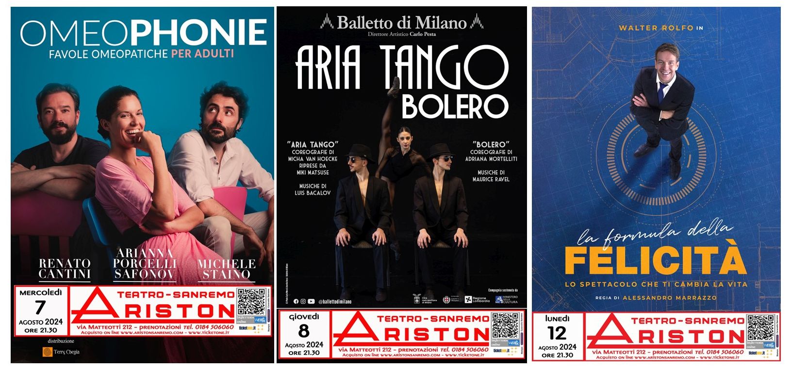 Info biglietteria 0184 506060 tutti i giorni dalle 17:00 alle 21:00 Biglietteria on line www.aristonsanremo.com o www.ticketone.it