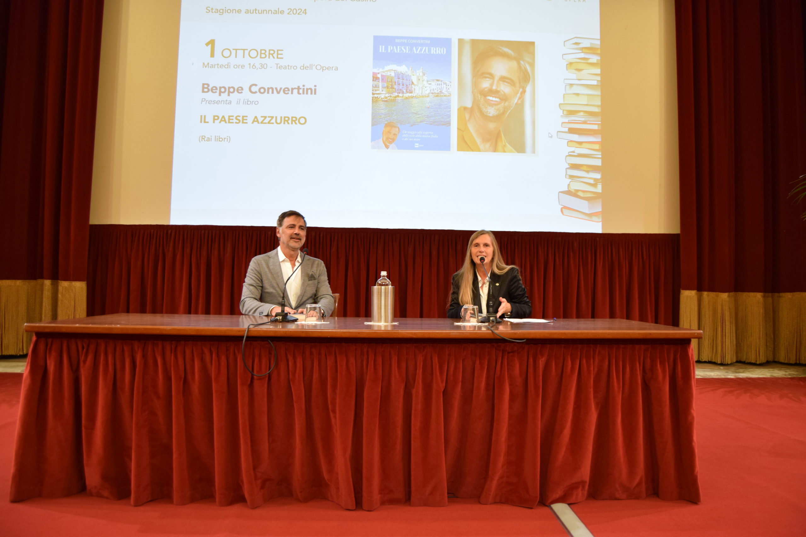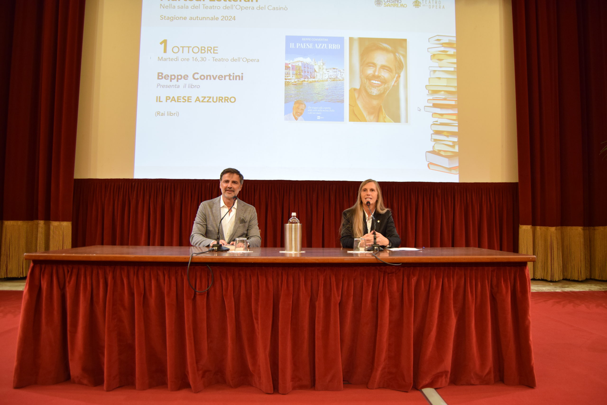 Martedì 1° ottobre 2024 nel Teatro dell’Opera del Casinò di Sanremo, Beppe Convertini, noto giornalista, conduttore e scrittore ha presentato il suo volume “IL PAESE AZZURRO”. Un viaggio alla scoperta delle coste della nostra Italia e del suo mare” (Rai Libri).