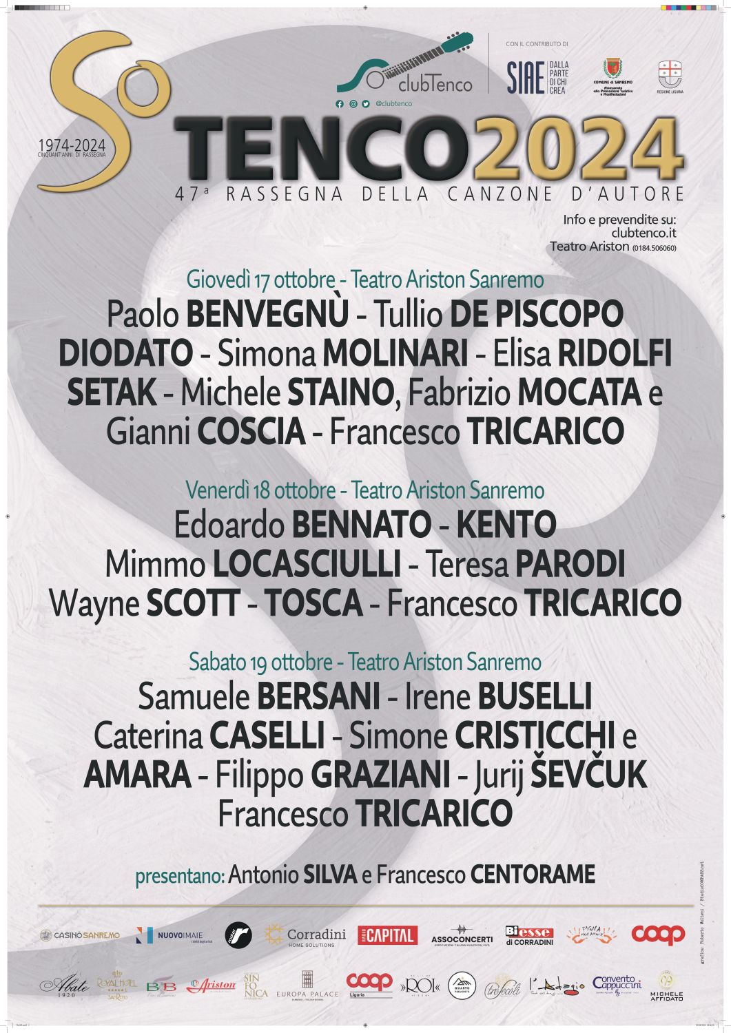 Edoardo Bennato (Premio Tenco 2024) – Mimmo Locasciulli (Premio Tenco 2024) – Kento – Teresa Parodi (Premio Tenco 2024) – Wayne Scott – Tosca – Francesco Tricarico.