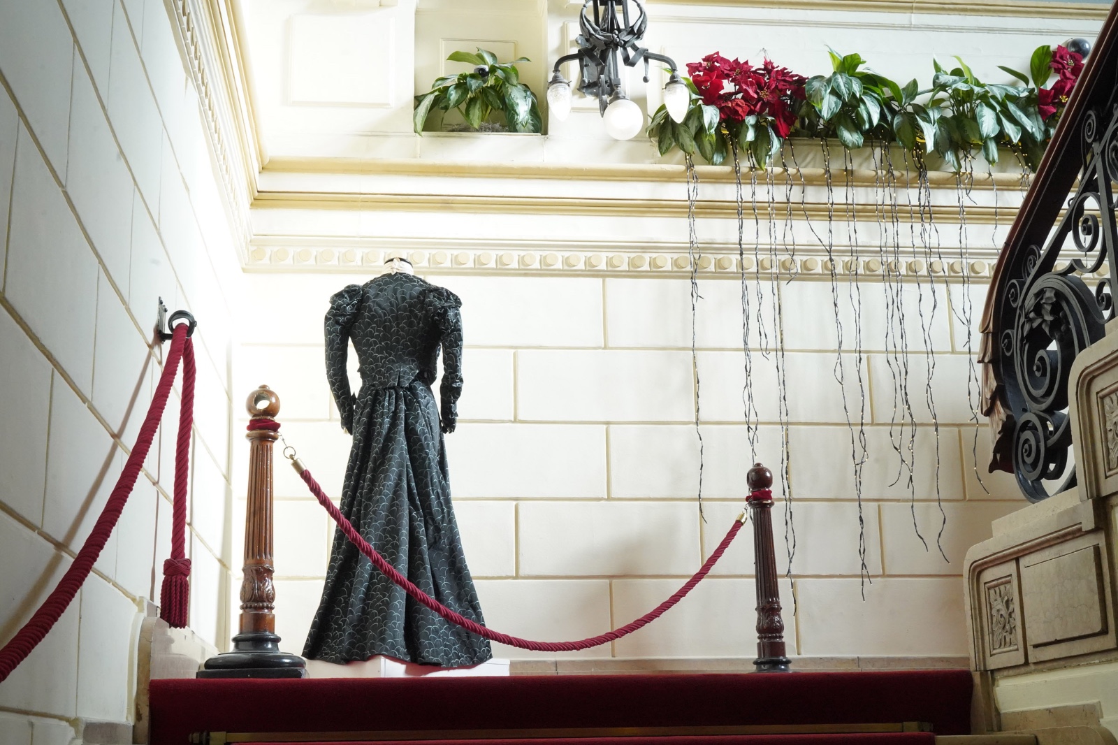 L’eleganza dell’esposizione viene accentuata dagli splendidi abiti d’epoca che raccontano l’evoluzione della moda da fine ‘800 ad oggi. Due abiti da ricevimento sono posti sulla scalinata che porta alle sale superiori, un elegante abito fatto con scialle del cashmere e una serie di accessori femminili scaldano l’ambiente tra i tavoli da gioco per poi arrivare nel foyer, dove rivivrete le atmosfere della Belle Époque con gli iconici “abiti Riviera” in cotone e pizzo: un elegante abito da sera anni ‘30 in seta per ricordare il primo Gala della Moda del 1937 svoltosi al Casinò. Infine un iconico abito da sera fine anni ‘60 per ricordare il “Festival della Moda Italiana” che hanno consacrato il Made in Italy e in quegli anni hanno reso celebre la Riviera. Il percorso della moda in 120 anni si conclude con una creazione moderna della collezione “Fiori di Montagna” in tessuto sostenibile, realizzato, dell’Atelier DAPHNÉ, e ispirato da un disegno d’archivio creato negli anni 80 da Renzo Borsotto in cui è protagonista la flora montana delle alpi liguri. Gli abiti d’epoca provengono dalla collezione del Museo DAPHNÉ della Moda e del Profumo di Sanremo, gentilmente concessi dalla famiglia Borsotto.