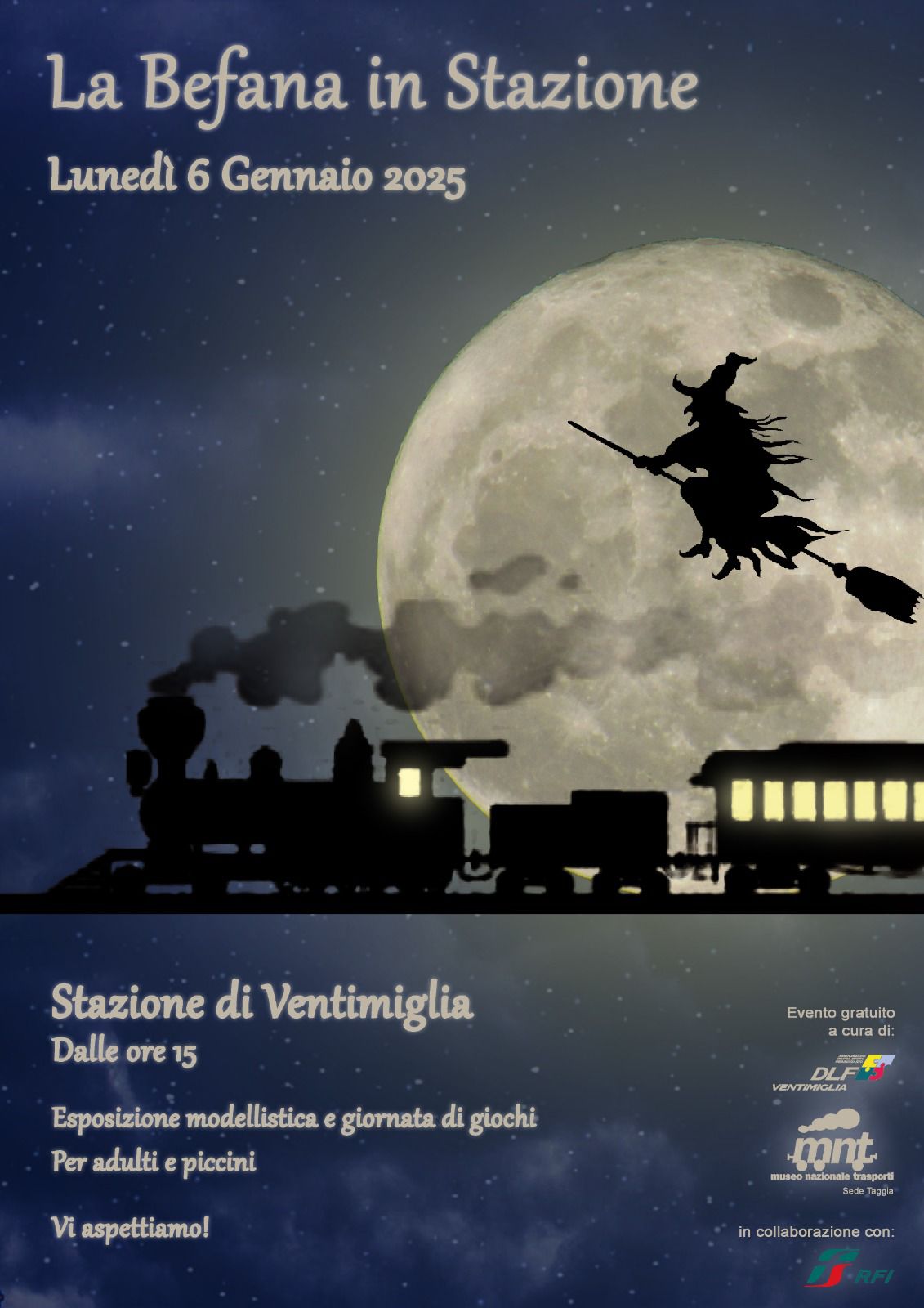 Si rinnova anche quest’anno la Festa dedicata alla Befana, organizzata dal Museo Nazionale Trasporti/Sede di Taggia-Arma con il Dopolavoro Ferroviario di Ventimiglia ed in collaborazione con Rete Ferroviaria Italiana. L’occasione è anche quella di festeggiare il 7° anno di vita del M.N.T.
