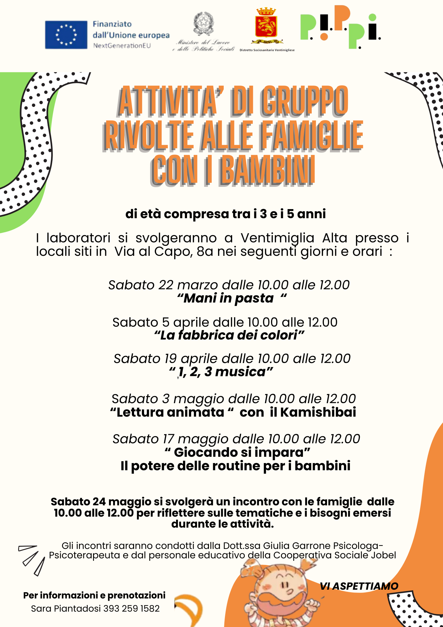 L’iniziativa è parte del progetto PIPPI (Programma di Intervento Per Prevenire l’Istituzionalizzazione), cui l’Ufficio Servizi Sociali della città delle palme partecipa in collaborazione con i Servizi Sociali dell’Ambito Ventimigliese con l’obiettivo di favorire la socializzazione e lo sviluppo di competenze e capacità, anche di gioco. Il calendario delle attività, ideate per coinvolgere genitori, famiglie con bambini dai 3 ai 5 anni e ragazzi dagli 11 ai 17 anni, proseguirà fino a maggio 2025 con vari momenti di confronto nel comprensorio intemelio.