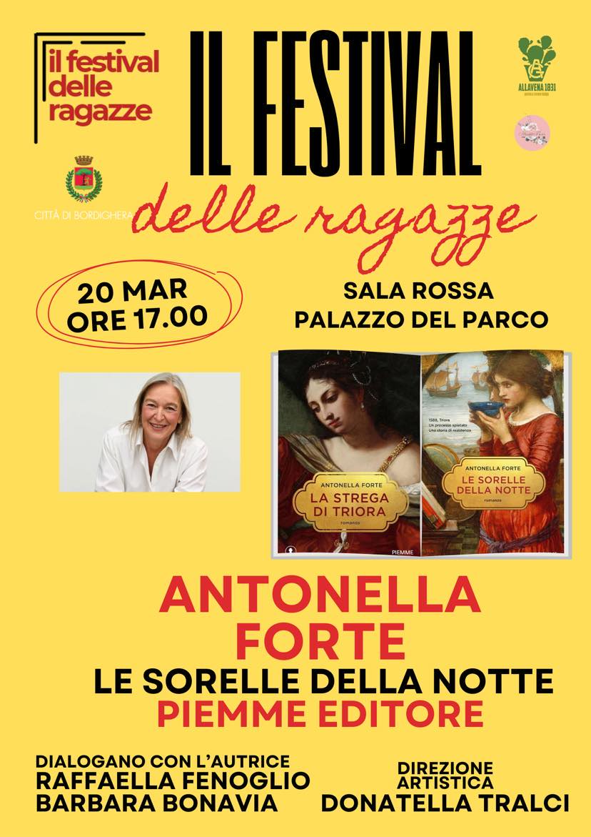 L’appuntamento fa parte della rassegna letteraria “Il Festival delle Ragazze” organizzata dall’omonima associazione culturale , con il patrocinio del Comune di Bordighera