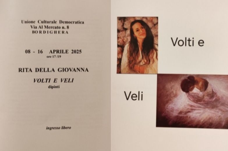 Mostra dei dipinti “Volti e Veli” di Rita Della Giovanna che, dall’08 al 16 Aprile 2025,  ha luogo nella sede dell’ UCD di via Al Mercato n.8 di Bordighera.