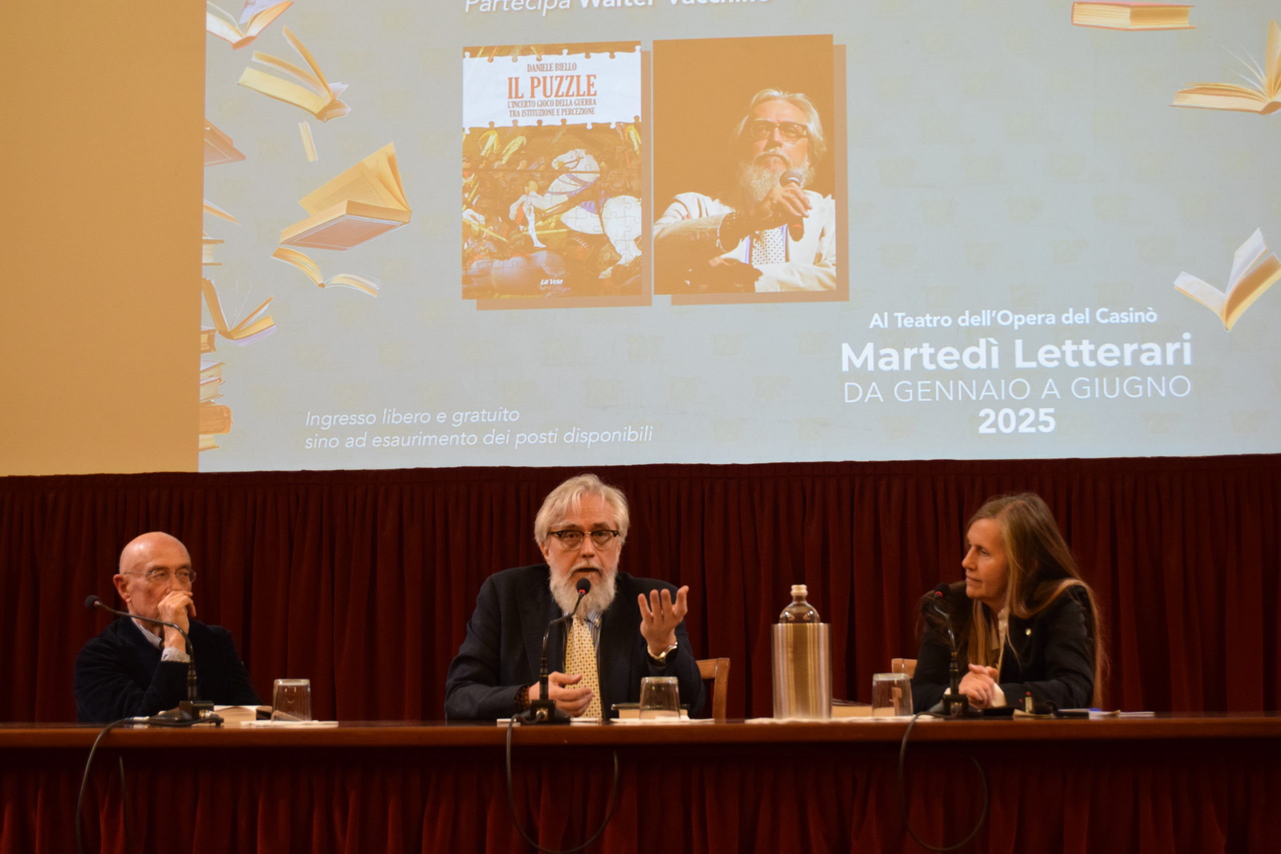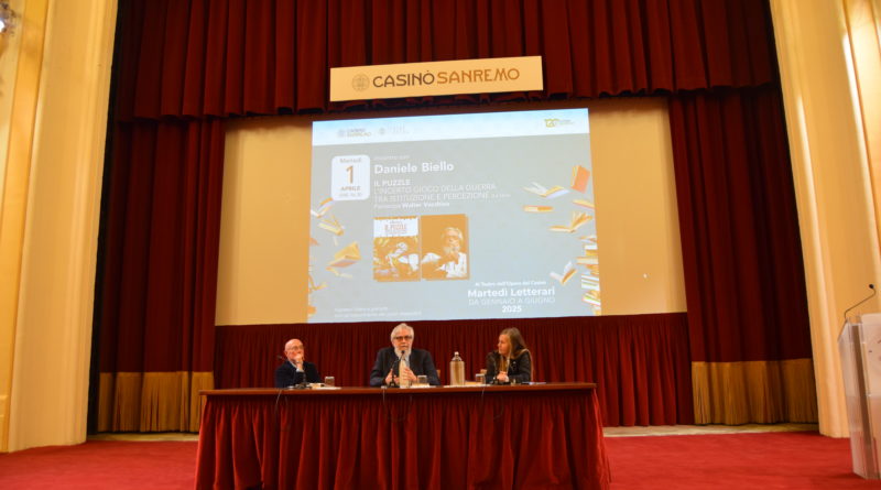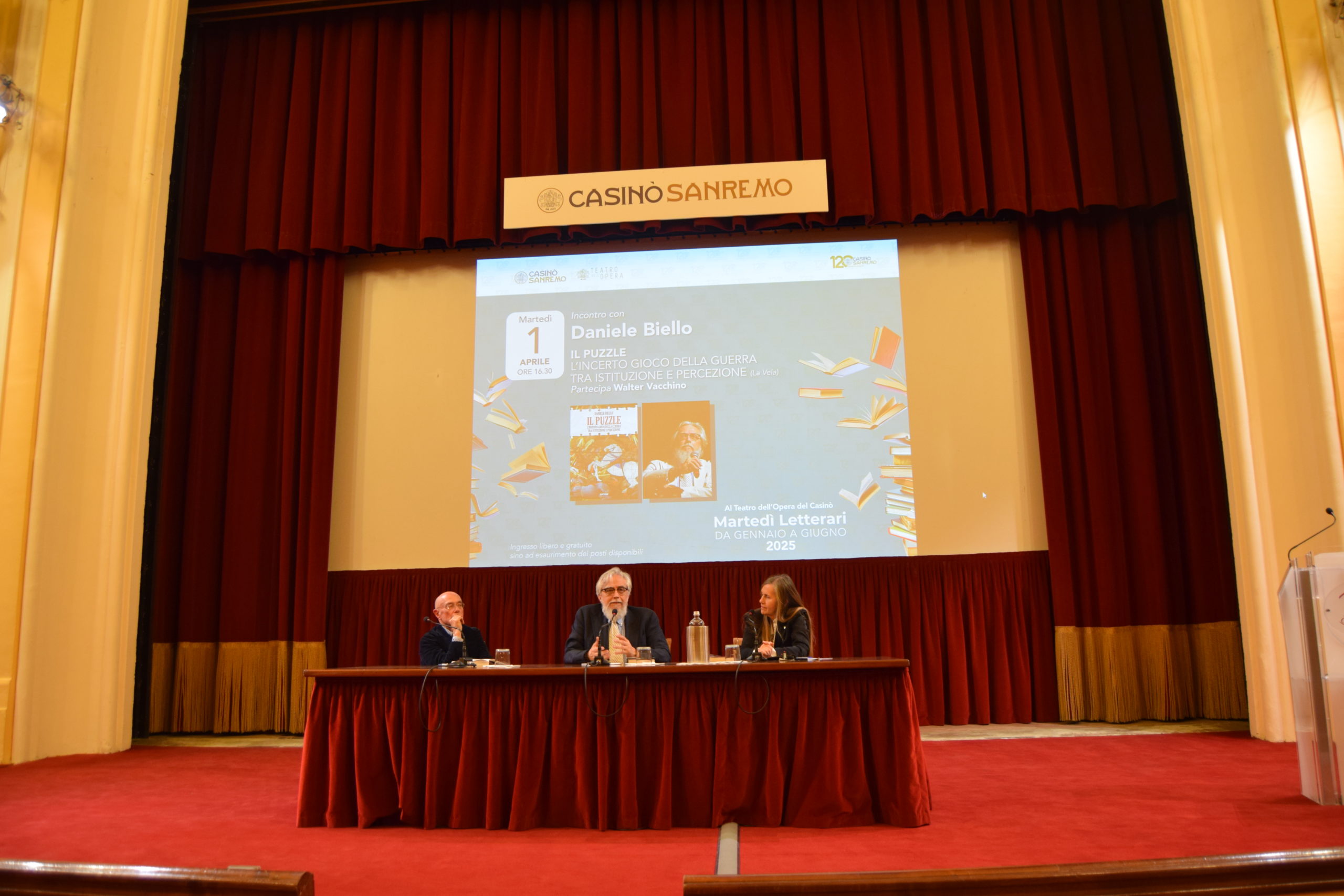 Martedì 1° aprile alle ore 16.30 nell’ambito dei Martedì Letterari, curati da Marzia Taruffi, nel teatro dell’Opera del Casinò di Sanremo, Daniele Biello ha presentato il saggio: ”Il Puzzle L’incerto gioco della guerra tra istituzione e percezione” (La Vela). All’evento ha partecipato Walter Vacchino.