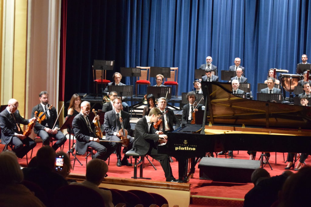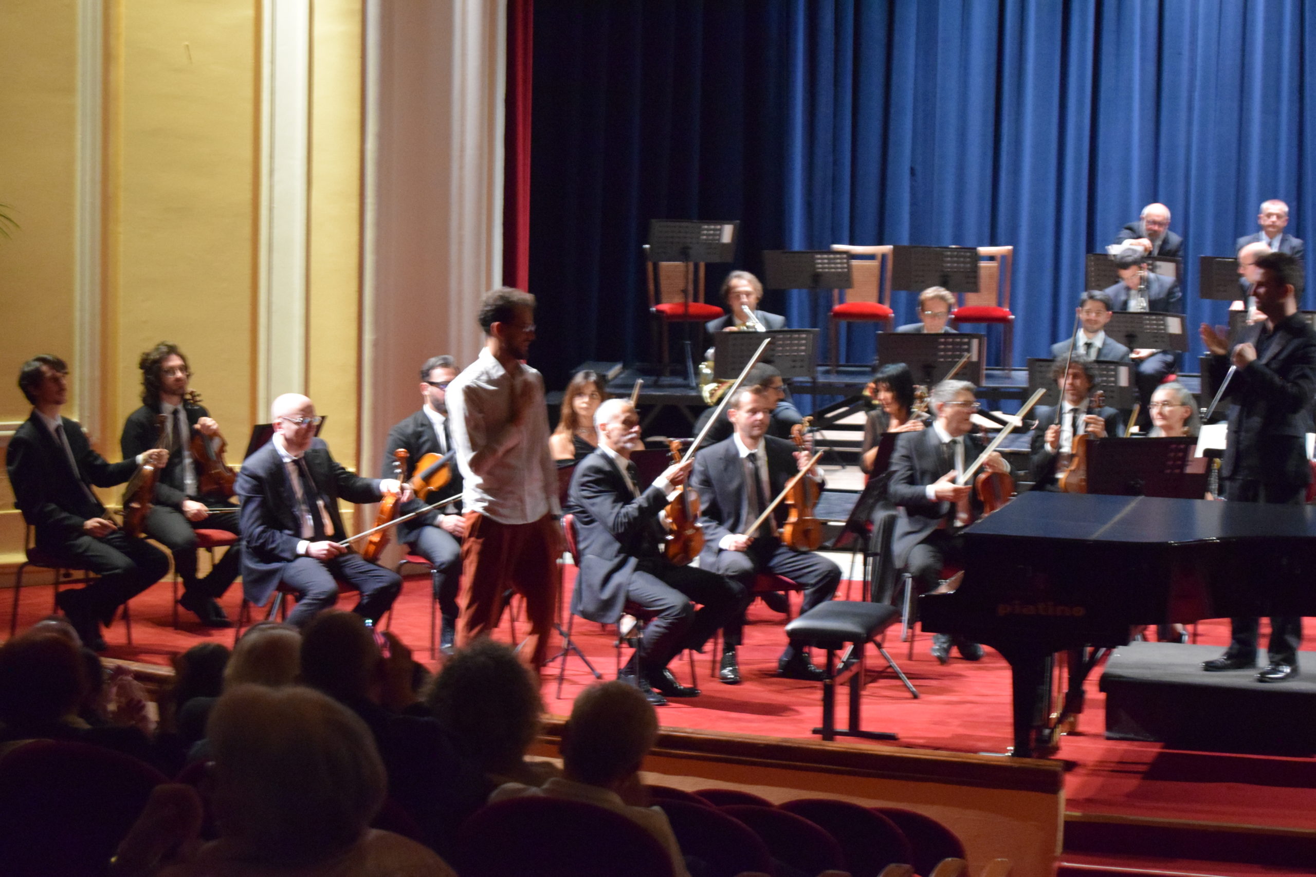 In apertura è stata accolta dal pubblico con calorosi applausi la prima assoluta di “Elements – I. Earth” scritta da Nicolas Elias Rigato, pianista, compositore, scrittore e ricercatore attivo nel panorama musicale contemporaneo europeo, impegnato nel progetto sinfonico “La forza della Natura”, dedicato a Libereso Guglielmi.