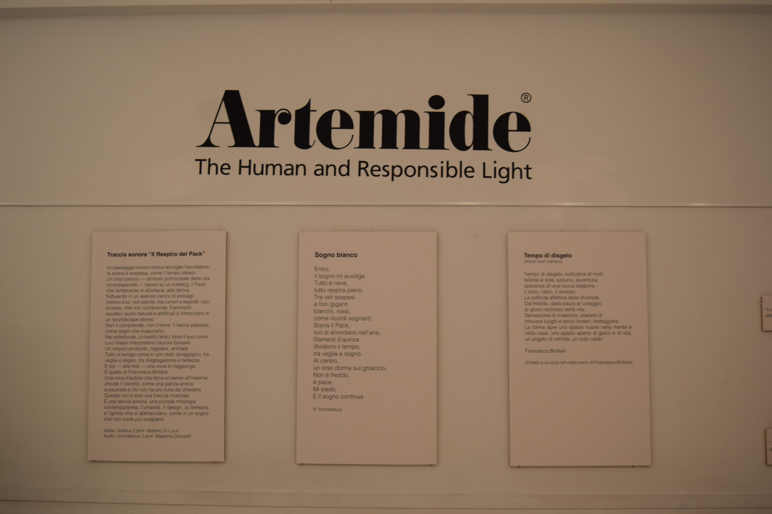 L’esposizione è allestita nella splendida cornice della sede dell’Accademia di Belle Arti, in via Val Del Ponte a Sanremo, include prodotti d’archivio, pezzi iconici e articoli esclusivi appena presentati al Salone del Mobile di Milano da Artemide ed Edra.