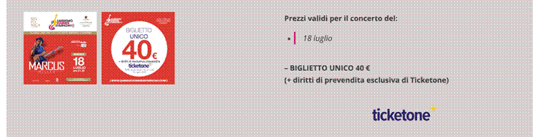 | martedì 12 agosto ore 21.30 | ORCHESTRA SINFONICA DI SANREMO feat MARIO BIONDI direttore M° Gerardo Felisatti Mario Biondi, cantautore e arrangiatore siciliano, considerato la più bella voce soul della musica italiana, per la prima volta salirà sul palco con l’Orchestra Sinfonica di Sanremo per un emozionante concerto che proporrà rivisitazioni di capolavori del repertorio italiano e internazionale e brani legati ai suoi oltre 35 anni di carriera. Da “Prendila così” (Battisti – Mogol – Musker) a “Fool For your love”, brano inserito nel suo album “Crooning Undercover” scritto con Steven Sater. Link al programma e biglietteria |