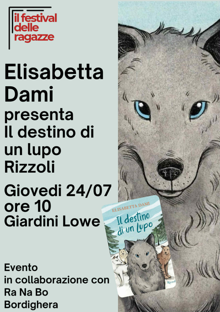 Il 24 luglio alle ore 10,00 un simpatico fuori programma. L’associazione ospiterà Elisabetta dami, celebre ideatrice di Geronimo Stilton, uno dei personaggi più iconici della narrativa per l’infanzia. L’autrice presenterà, presso i giardini Lowe , il suo ultimo libro ”Il destino del lupo” Rizzoli L’evento é organizzato in collaborazione con Ra Na Bo Bordighera.