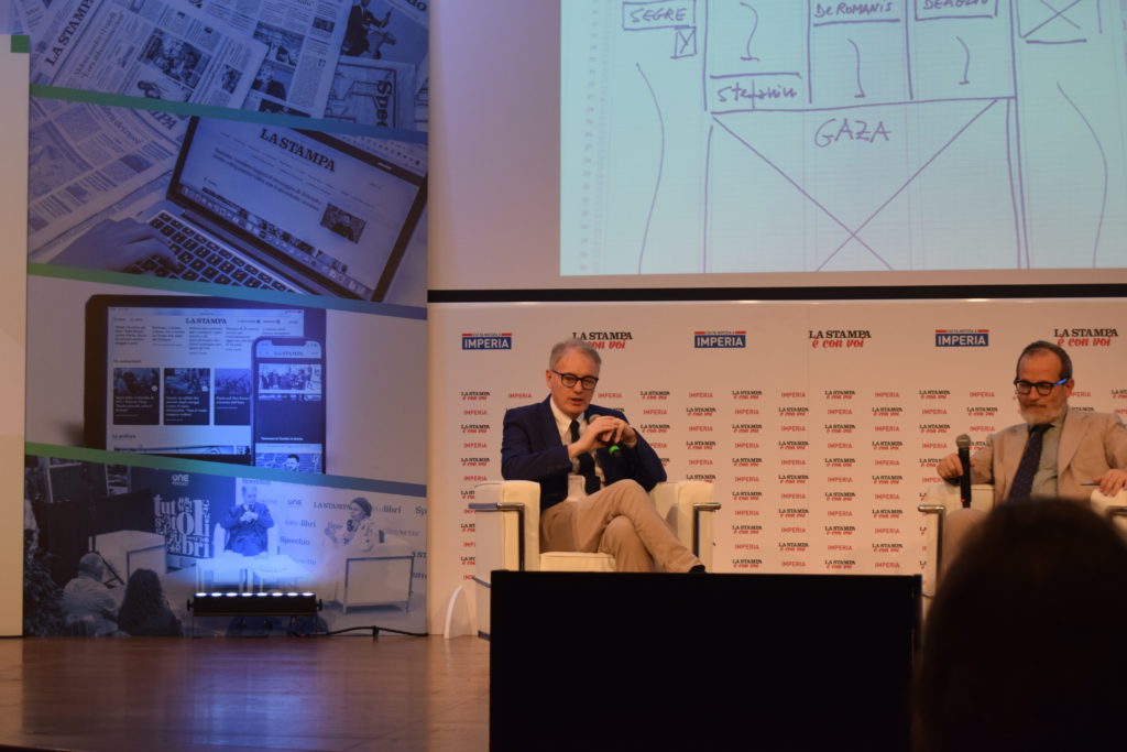 All’incontro sono intervenuti il direttore Andrea Malaguti, il vice-direttore Federico Monga, il giornalista Giulio Gavino responsabile dell’edizione Imperia -Sanremo de La Stampa, la giornalista Daniela Borghi, Anna Zafesova giornalista per i temi internazionali, Luca Bottura.