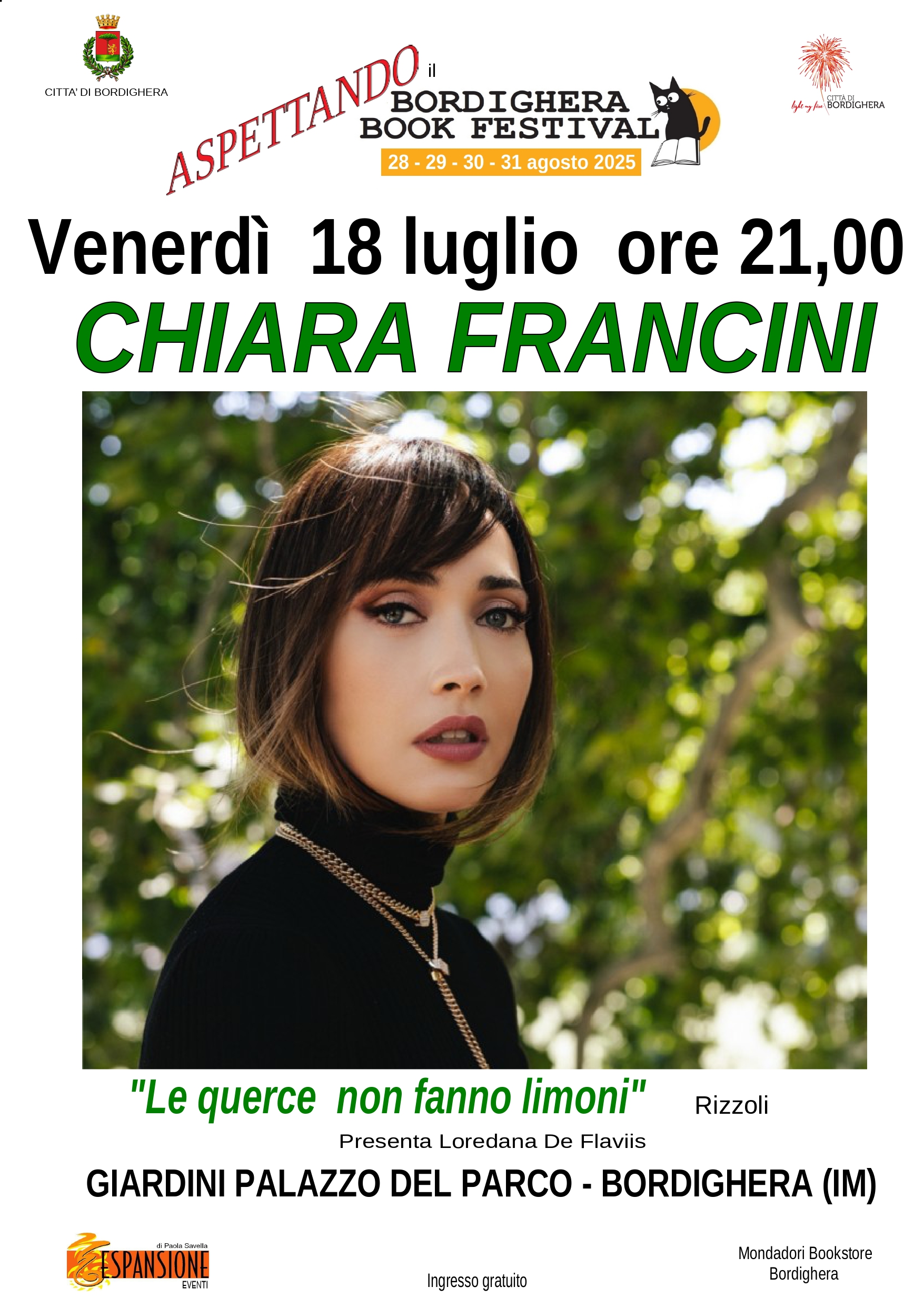 L’evento organizzato da Espansione di Paola Savella e Mondadori Bookstore di Bordighera con la collaborazione e il Patrocinio del Comune di Bordighera (IM) si inserisce nel vasto programma della 12° edizione del Bordighera Book Festival che andrà in scena l’ultimo week end di agosto.