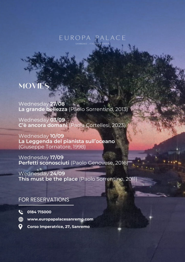 PROIEZIONI DI GRANDI FILM ITALIANI NELLA TERRAZZA DELL’EUROPA PALACE HOTEL A SANREMO