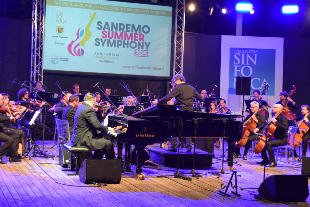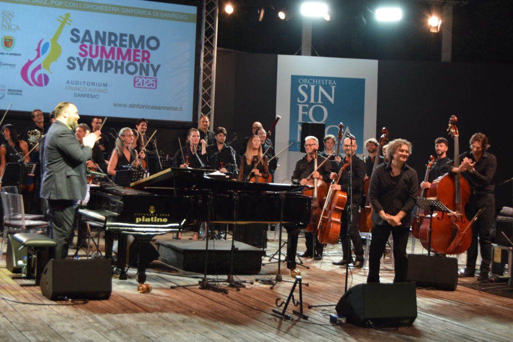 Lo spettacolo con l’eccezionale ritorno a Sanremo di Raphael Gualazzi è stato un raffinato incontro tra jazz, blues, soul e musica classica pronto ad infiammare la platea dell’auditorium. Oltre all’Orchestra Sinfonica di Sanremo sul palco Anders Ulrich al contrabbasso e Gianluca Nanni alla batteria hanno affiancato il cantautore marchigiano.