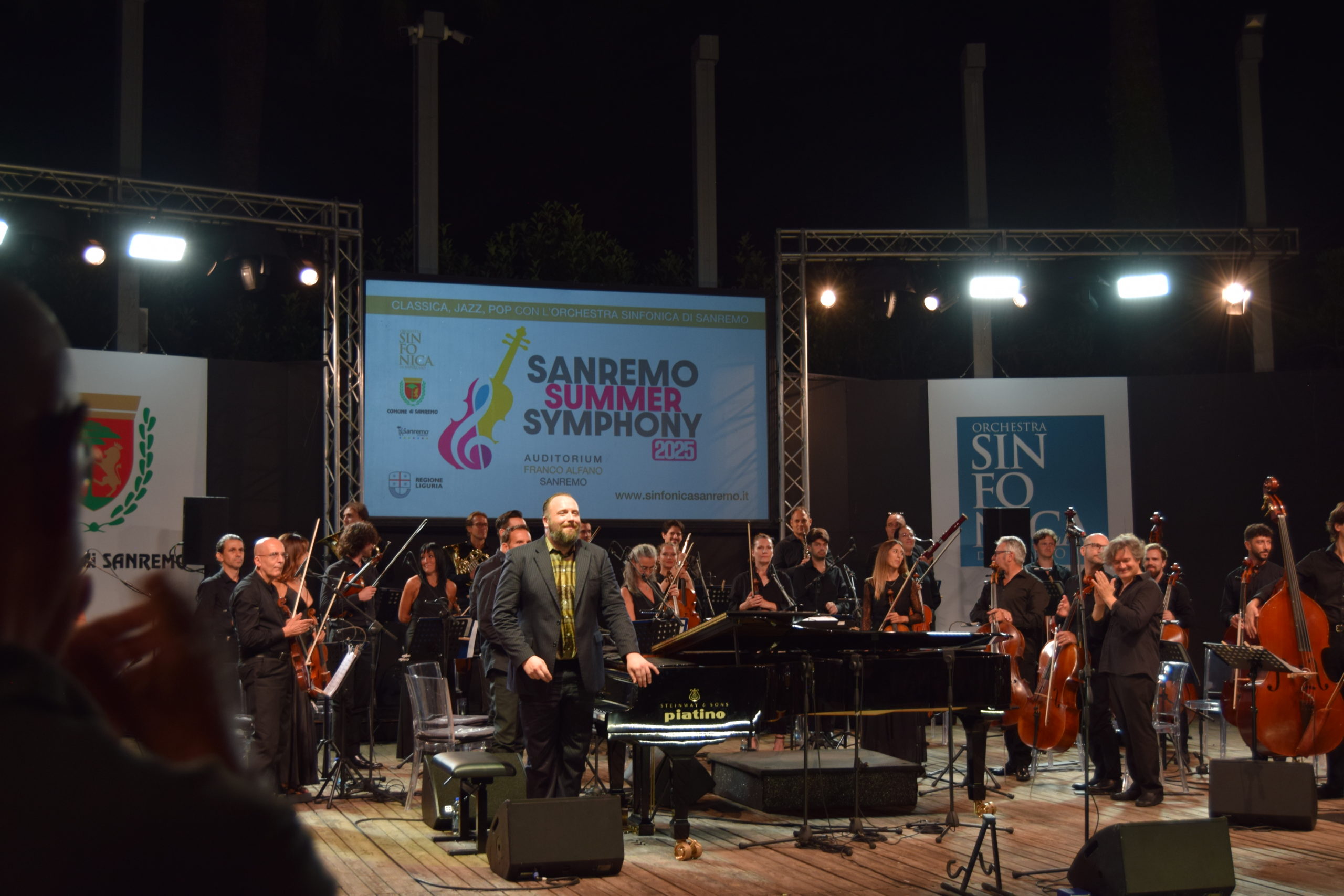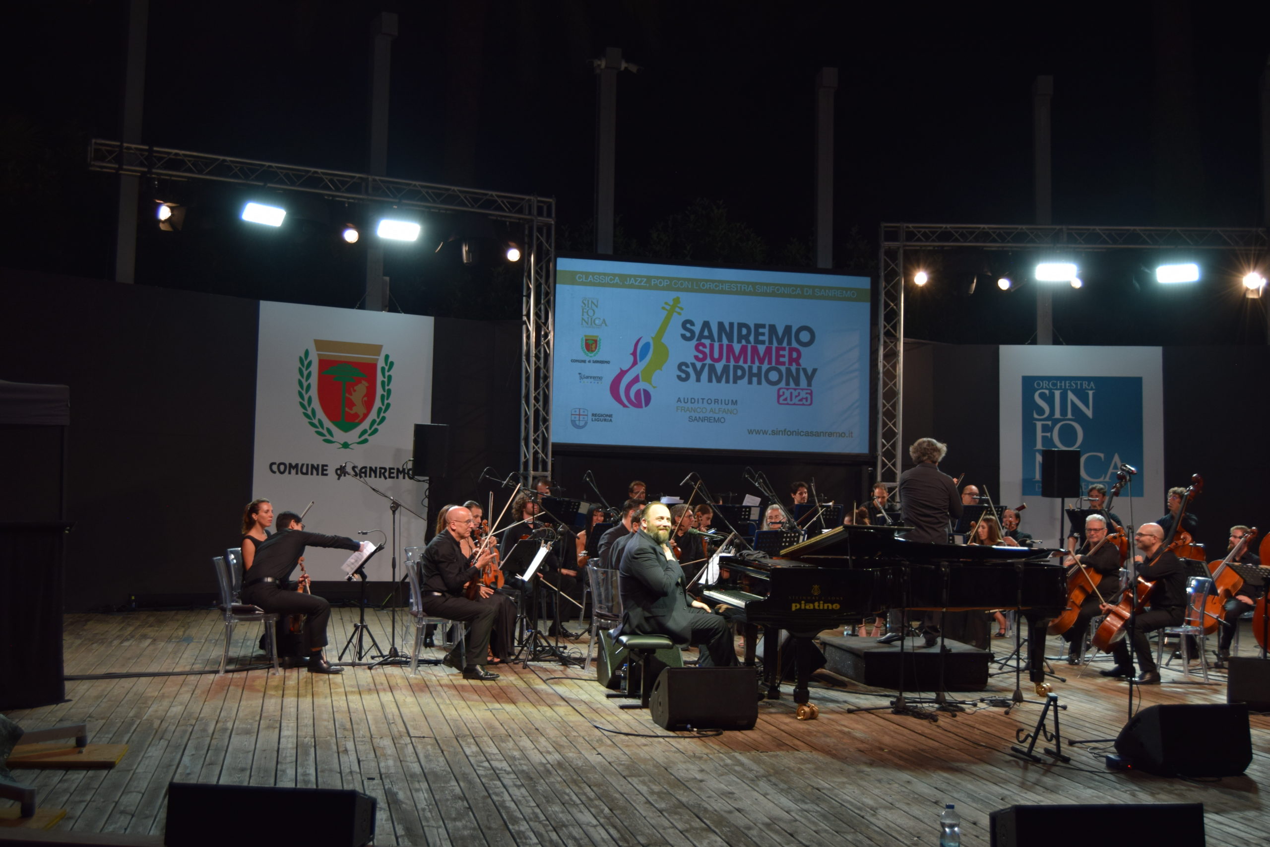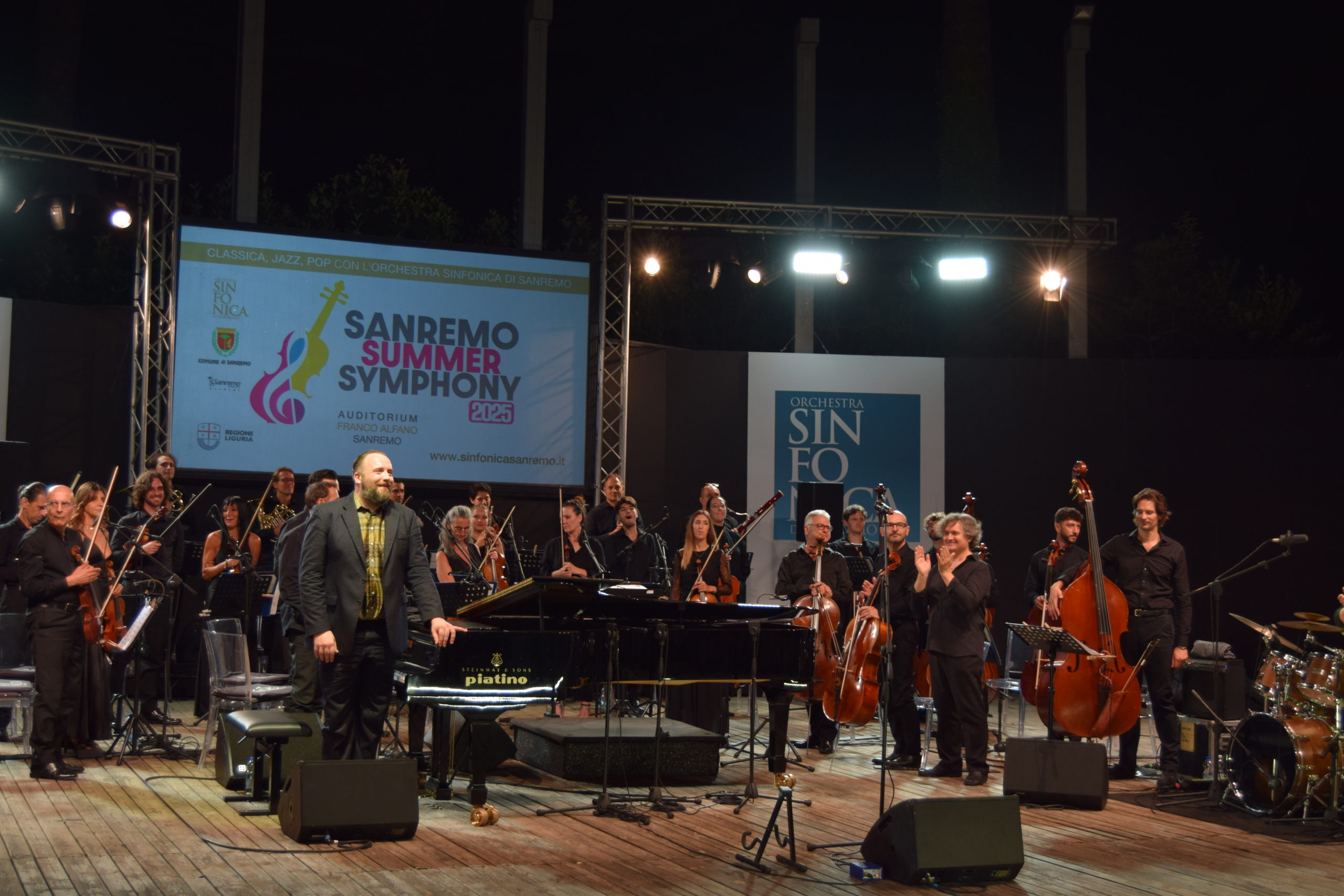 Lo spettacolo con l’eccezionale ritorno a Sanremo di Raphael Gualazzi è stato un raffinato incontro tra jazz, blues, soul e musica classica pronto ad infiammare la platea dell’auditorium. Oltre all’Orchestra Sinfonica di Sanremo sul palco Anders Ulrich al contrabbasso e Gianluca Nanni alla batteria hanno affiancato il cantautore marchigiano.