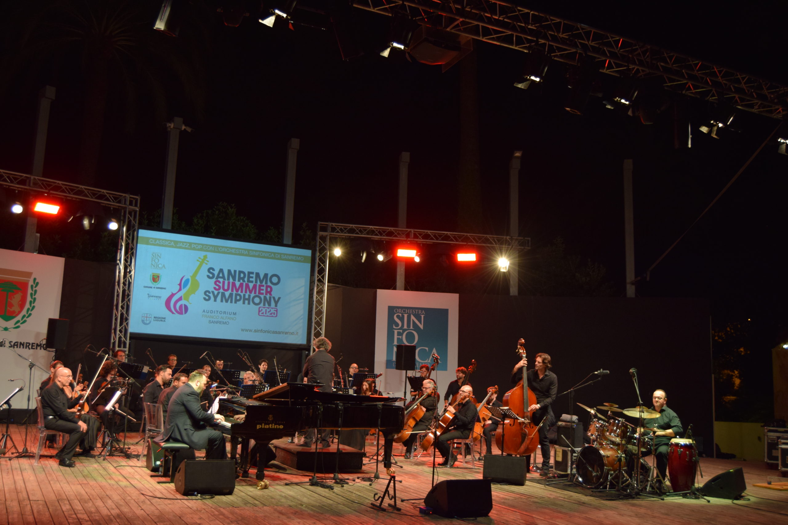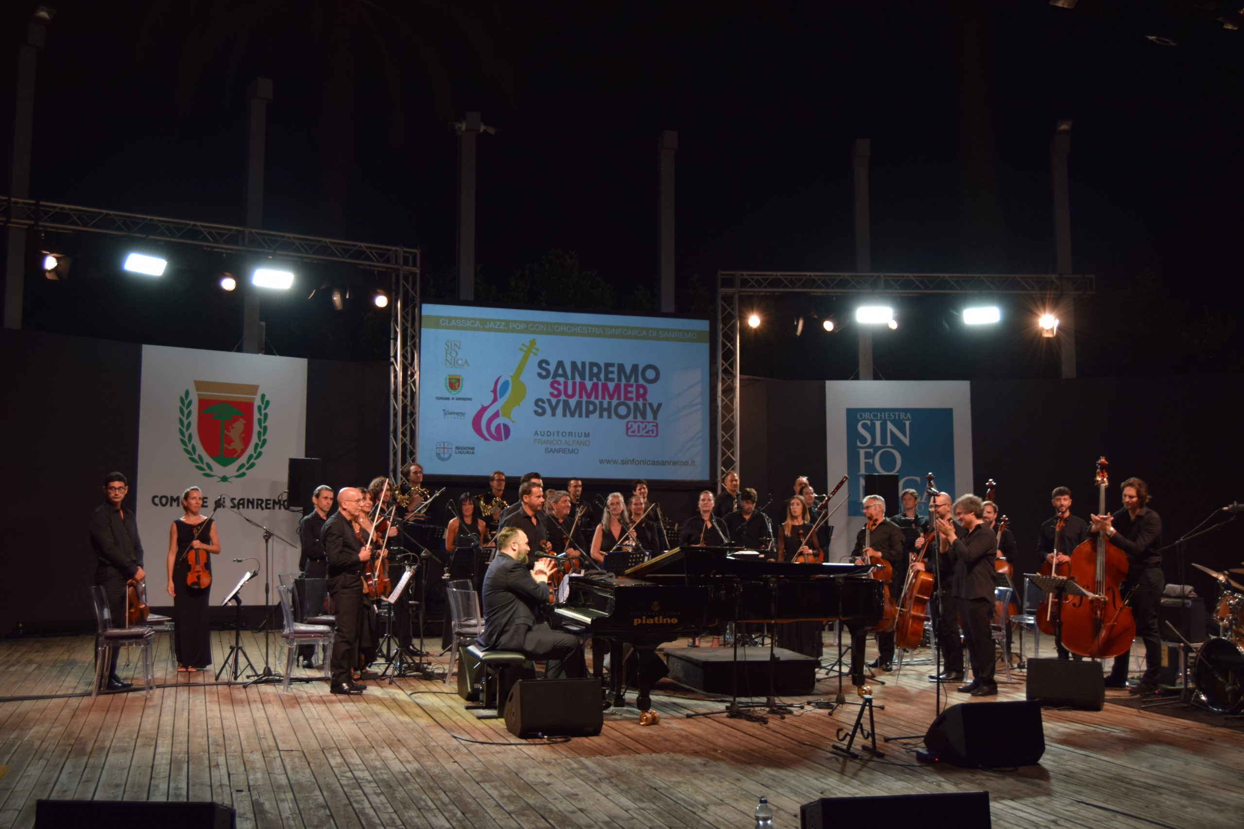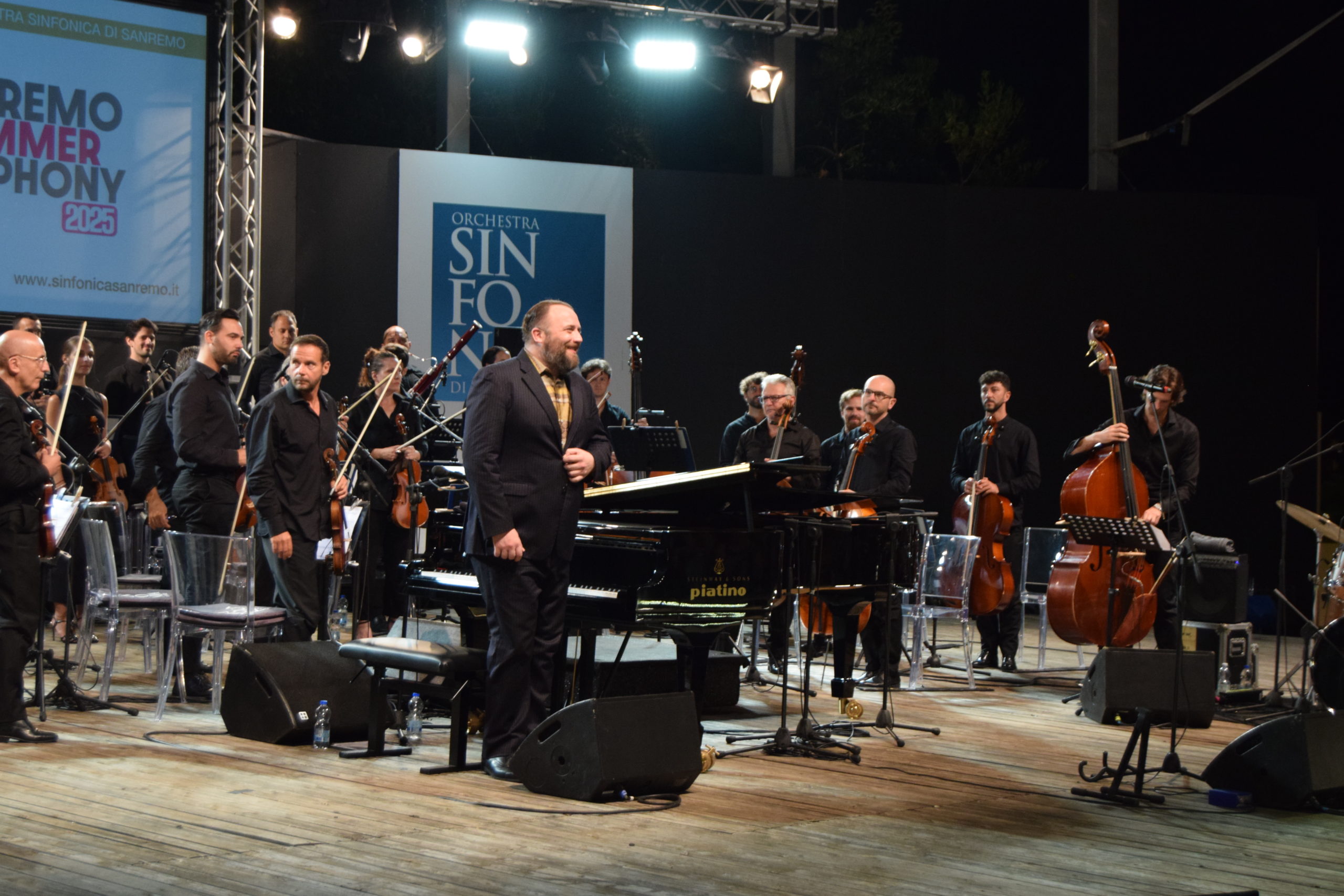Lo spettacolo con l’eccezionale ritorno a Sanremo di Raphael Gualazzi è stato un raffinato incontro tra jazz, blues, soul e musica classica pronto ad infiammare la platea dell’auditorium. Oltre all’Orchestra Sinfonica di Sanremo sul palco Anders Ulrich al contrabbasso e Gianluca Nanni alla batteria hanno affiancato il cantautore marchigiano.