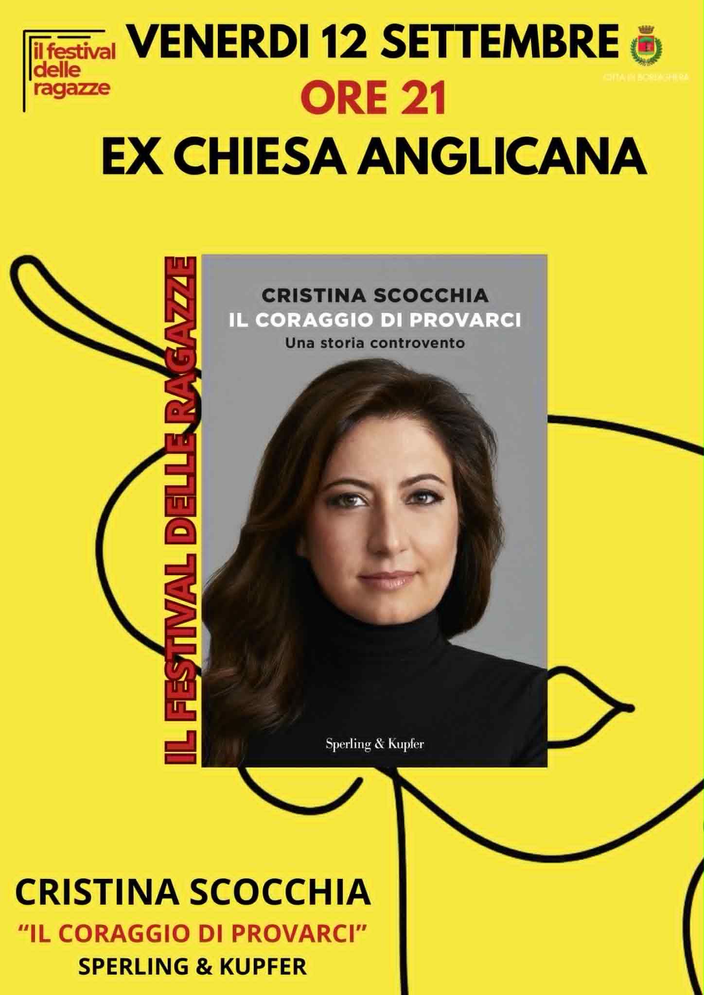 Venerdì 12 settembre torna il Festival delle Ragazze presso la Ex Chiesa Anglicana. Alle ore 21.00, l’associazione ospiterà Cristina Scocchia, che presenterà la sua autobiografia Il coraggio di provarci (Sperling & Kupfer).