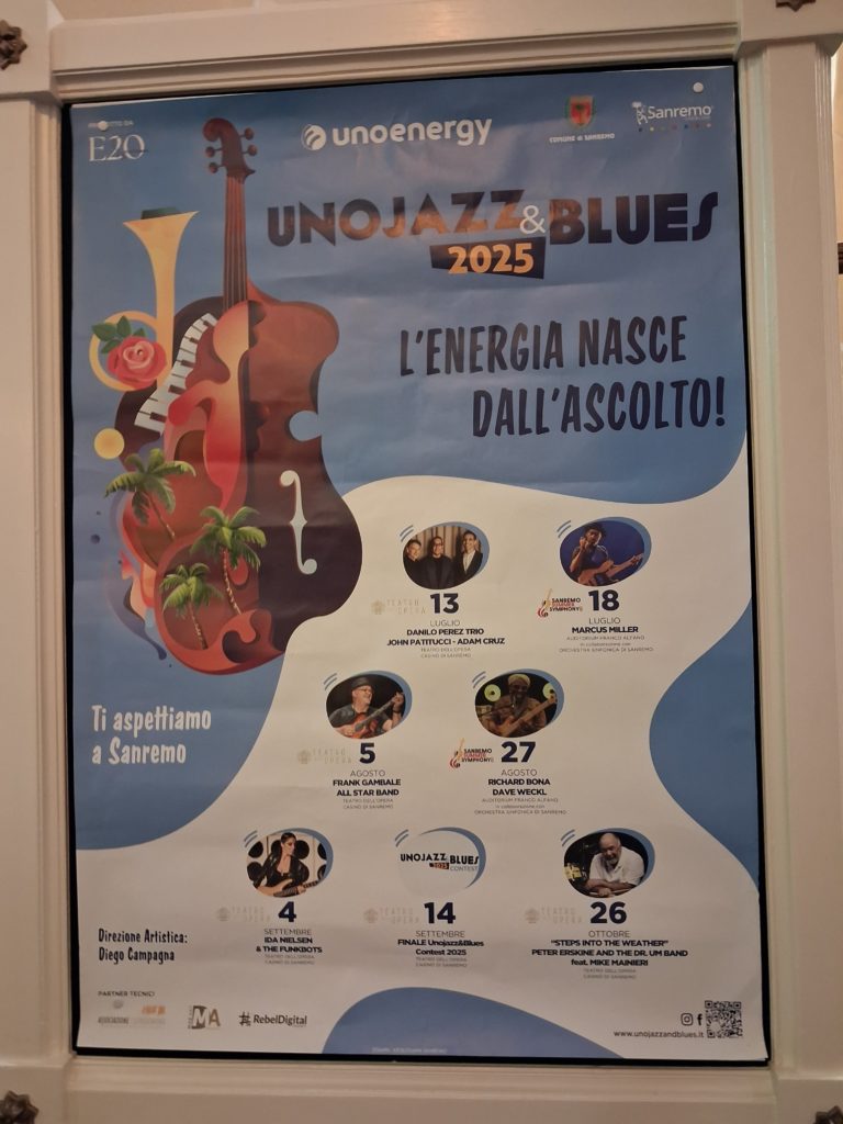 La serata firmata Unojazz&Blues è sponsorizzata da Unoenergy, azienda sanremese attiva su tutto il territorio nazionale nella commercializzazione di gas, energia elettrica e servizi di efficientamento energetico. Il Festival che sotto la produzione di E20 Sanremo vede la Direzione Artistica di Diego Campagna e la Direzione di Produzione affidata a Mara De Scalzi.