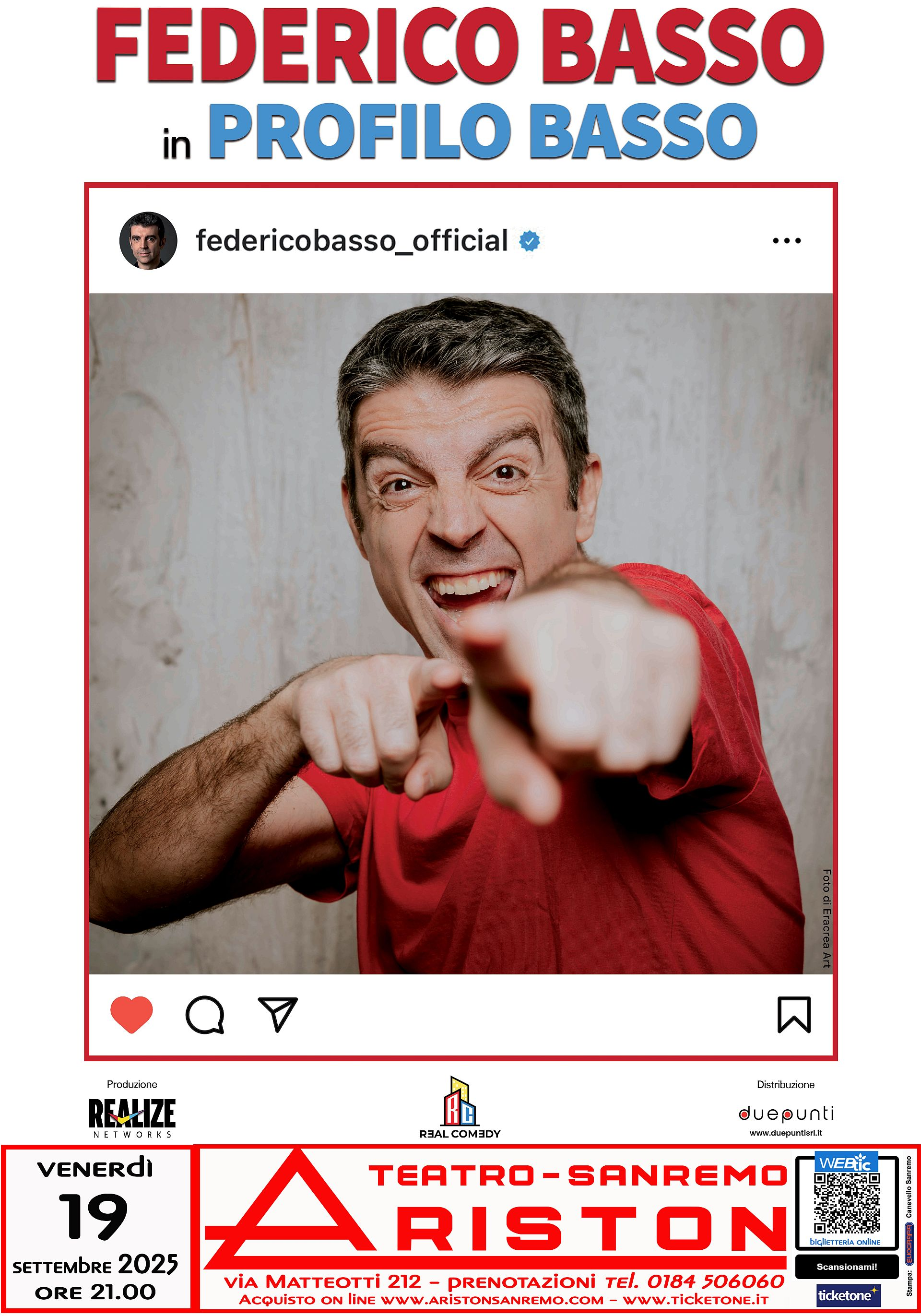 TEATRO ARISTON SANREMO – FEDERICO BASSO IN “PROFILO BASSO”