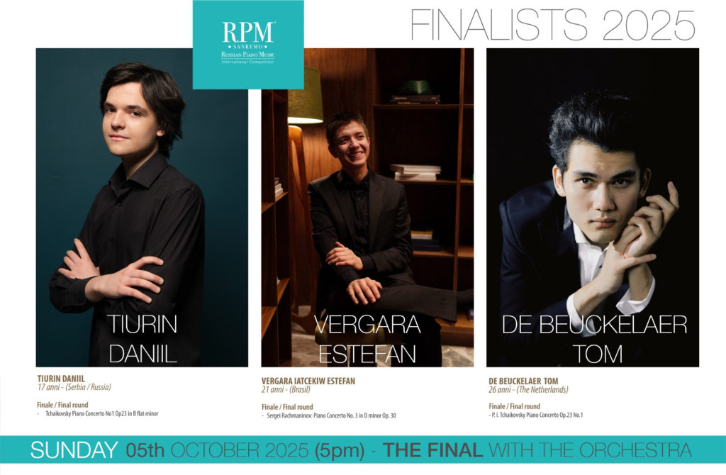 Gli ha fatto eco questa mattina il M° Antonio Di Cristofano (artistic secretary RPM Sanremo) che alla vigilia della finale racconta: “Ieri il lavoro della giuria per decidere i nomi dei finalisti è stato arduo, il livello dei partecipanti molto alto. Desidero ringraziare la Fondazione Orchestra Sinfonica di Sanremo, tutti i partecipanti, i membri della giuria miei colleghi e a tutto lo staff che ha lavorato a RPM Sanremo 2025, perché questa edizione, la sesta, è stata di grande livello, sia per il numero di iscritti che per la qualità dei semifinalisti e finalisti. Ci tengo a invitare tutti coloro che saranno a Sanremo questo weekend a venire al Teatro dell’Opera del Casinò domenica alle 17.00 per la finale”.