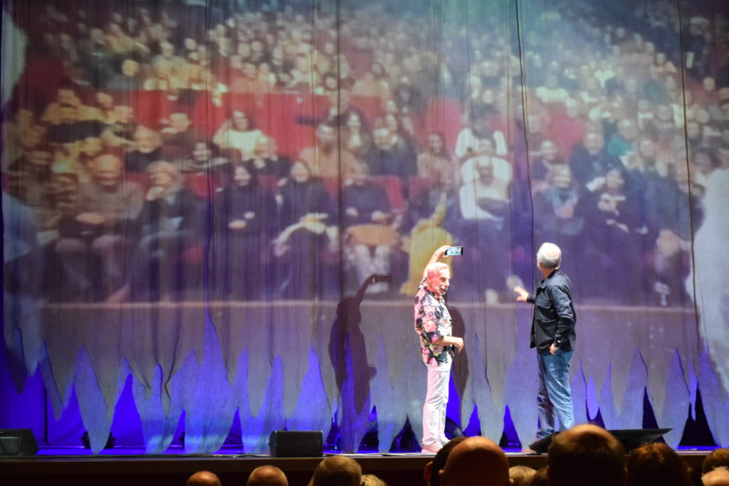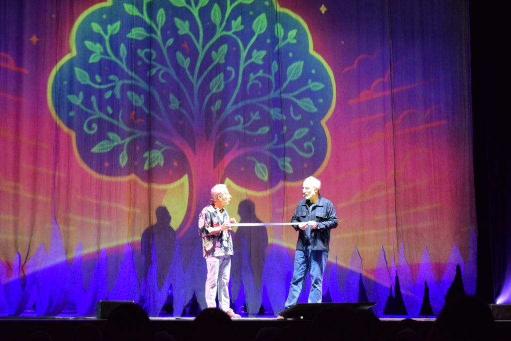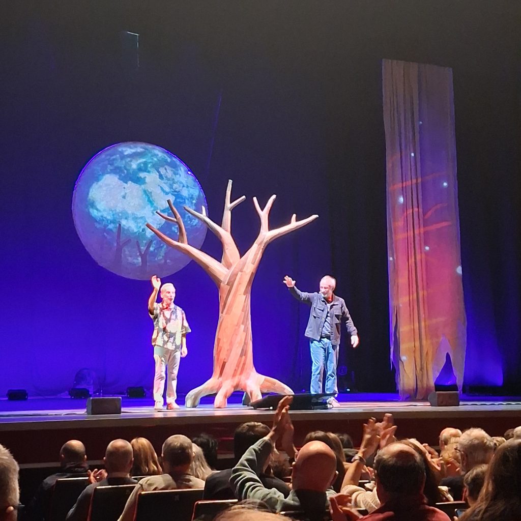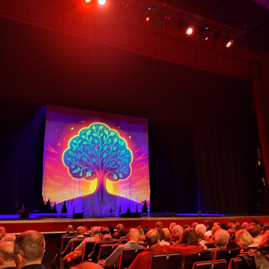 Venerdì 5 dicembre 2025 alle ore 21.00 nel Teatro Ariston di Sanremo, ha avuto luogo lo spettacolo “LUNGA VITA AGLI ALBERI” è uno spettacolo teatrale innovativo che vuole svelare i misteri del mondo vegetale attraverso un viaggio appassionante e sorprendente con una coppia d’eccezione: Giovanni Storti è un curioso viaggiatore accompagnato dal Professor Stefano Mancuso, la sua guida sapiente e illuminata. Il loro viaggio è raccontato dalla regia visionaria e poetica di Arturo Brachetti, che trasforma la narrazione in magia, coinvolgendo il pubblico in una atmosfera di grande suggestione. Questo spettacolo è un ideale viaggio in tre tappe tra natura, comicità e conoscenza, alla scoperta delle tre parti fondamentali di una pianta: radici, fusto e chioma. Racconta la loro importanza e il loro impatto sulla vita dell’uomo e sull’ecosistema. Si inizia con le radici, dove le piante lottano nel sottosuolo per risorse e sopravvivenza formando una rete sotterranea, fatta di comunicazione, collaborazione e competizione. Il viaggio prosegue con il fusto, un luogo di resistenza e crescita. Qui si affrontano i temi dell’adattamento delle piante ai cambiamenti climatici e alle avversità . Il fusto diventa il ponte tra terra e cielo, un simbolo di trasformazione che infonde speranza. Infine, si giunge alla chioma verde che celebra la bellezza, l’armonia e il potenziale rivoluzionario delle piante. Lungo il viaggio, Giovanni Storti esplorerà ̀ con stupore e ironia questo mondo affascinante mentre Stefano Mancuso ne svelerà ̀ i segreti stupefacenti. LUNGA VITA AGLI ALBERI non è solo un’esperienza teatrale: alternando comicità ̀ e momenti di riflessione, vuole sensibilizzare il pubblico sulla cruciale importanza del mondo vegetale per la vita sulla Terra, dimostrando come arte e scienza possano dialogare per generare consapevolezza e ispirare il cambiamento.