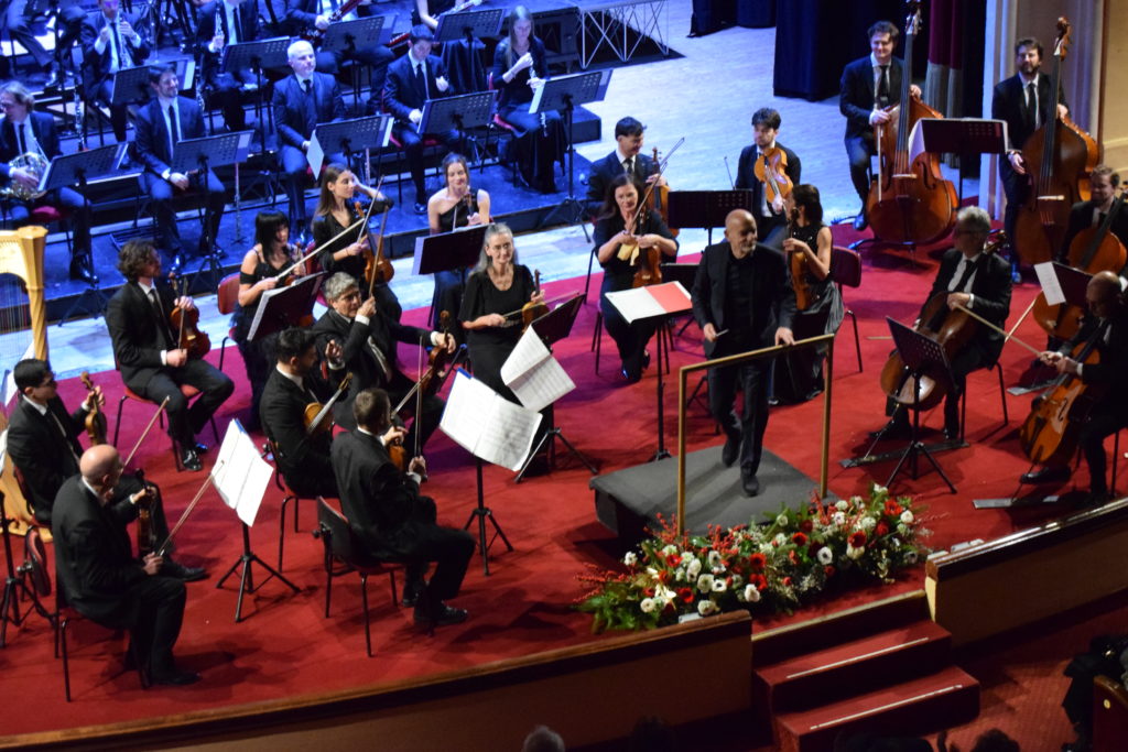 L’ appuntamento, come da tradizione , ha evocato in sala un’atmosfera festosa e di gioia di vivere con le esibizioni delle celebri composizioni della famiglia Strauss e delle pagine altrettanto popolari e suggestive del repertorio europeo. Il programma di sala ha poi offerto il celebre Valzer dell’Imperatore di Johann Strauss ( figlio), la brillante Polka di Anna , e un travolgente finale con” Sul bel Danubio blu” il celeberrimo valzer simbolo di Vienna.