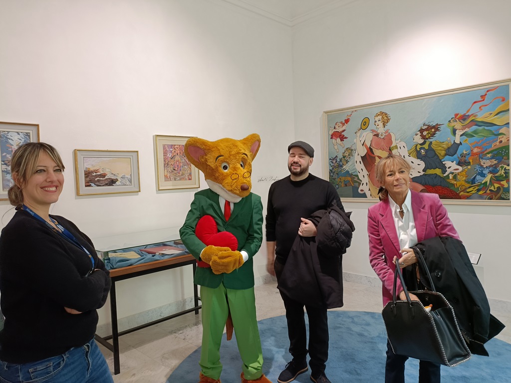 Visita speciale questa mattina al museo civico, in piazza Nota a Sanremo, da parte di Geronimo Stilton e della scrittrice Elisabetta Dami. Il noto personaggio tanto amato dai bambini e la sua autrice, accompagnati dall’assessore alla cultura Enza Dedali, hanno ammirato le opere esposte, tra le quali i disegni di Antonio Rubino, soffermandosi su una teca contenente un teatrino con un topolino.