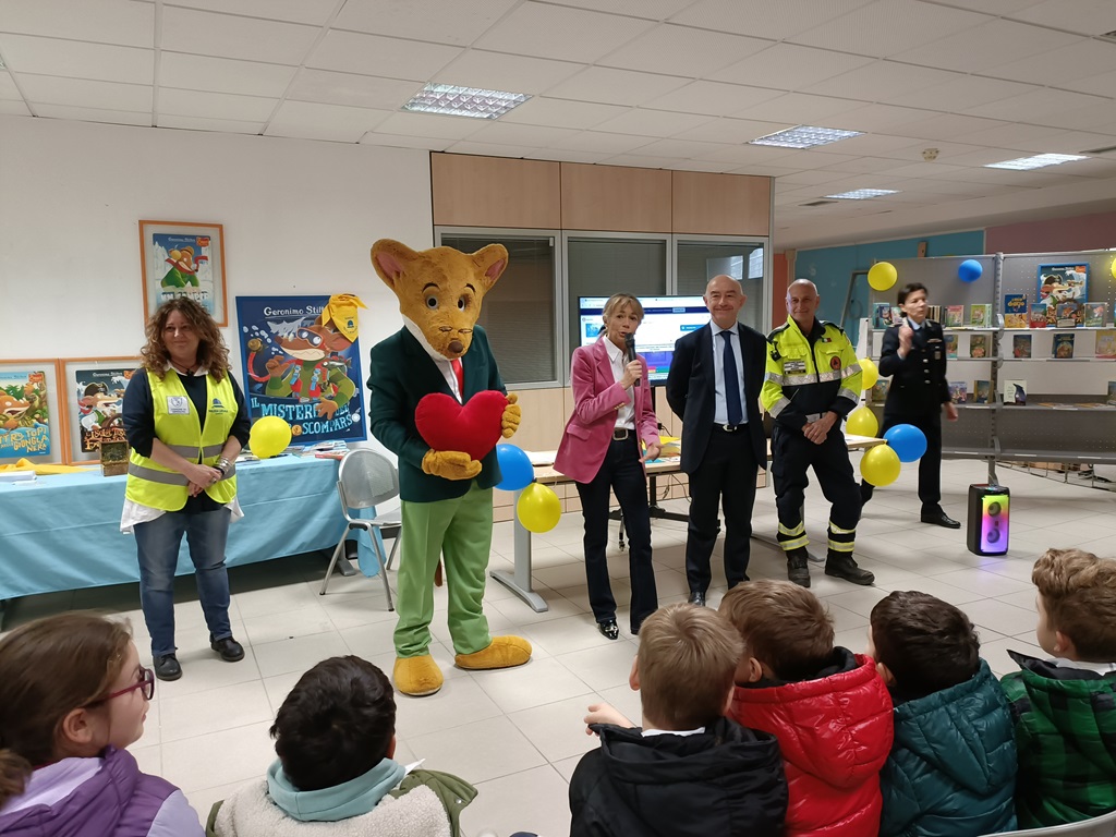 Questa mattina Geronimo Stilton ed Elisabetta Dami avevano partecipato, con il sindaco Alessandro Mager e la vicecomandante della polizia locale Erica Biondi Zoccai, anche ad un incontro con i bambini dedicato alla protezione civile. Il programma di iniziative della polizia locale nell’atrio del Palafiori, dopo il primo appuntamento di ieri incentrato sulla tutela ambientale, proseguirà domani con la sicurezza stradale.
