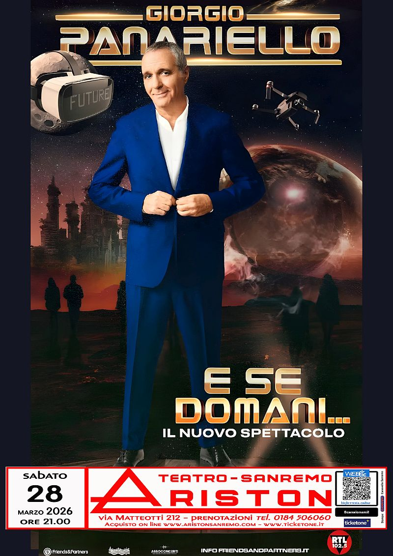 Secondo appuntamento della stagione del teatro Ariston sabato 28 marzo alle ore 21.00 con Giorgio Panariello, che torna sul palco dell’Ariston con il nuovo spettacolo “E se domani”.