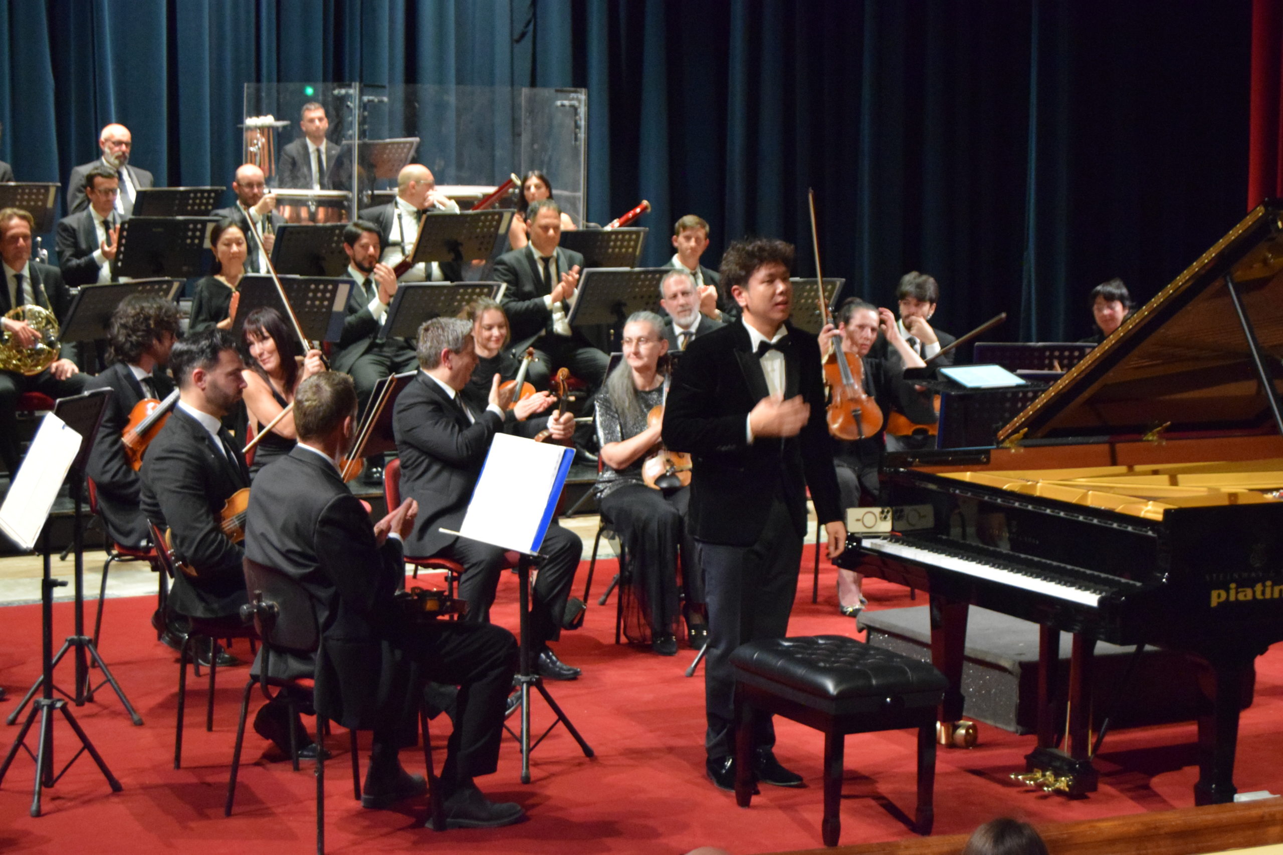 Nella serata del 23 aprile 2026, al Teatro dell’Opera del Casinò, l’Orchestra Sinfonica di Sanremo diretto dal M° Nicola Colafelice mentre al pianoforte è stato protagonista il giovane Congyu Wang, artista di respiro internazionale apprezzato per la brillantezza tecnica e la sensibilità interpretativa. Il pubblico ha caldamente elargito scroscianti applausi e richiesta di bis, riportando in scena i protagonisti del concerto.